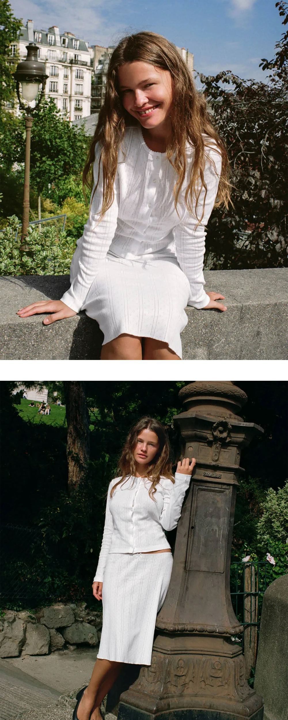 쿠쿠 인티메이트 우먼 더 가디건 화이트입니다. - 80년대 빈티지 무드를 재해석한 매력적인 실루엣 - 쿠쿠 인티메이트의 모든 에센셜 아이템과 완벽한 레이어드 조화 - 부드럽고 가벼운 소재감으로 데일리 라운지웨어 활용 가능
