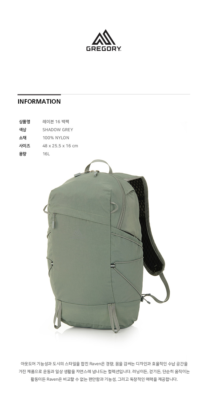 그레고리 레이븐16 러닝백팩 16L 섀도우 그레이