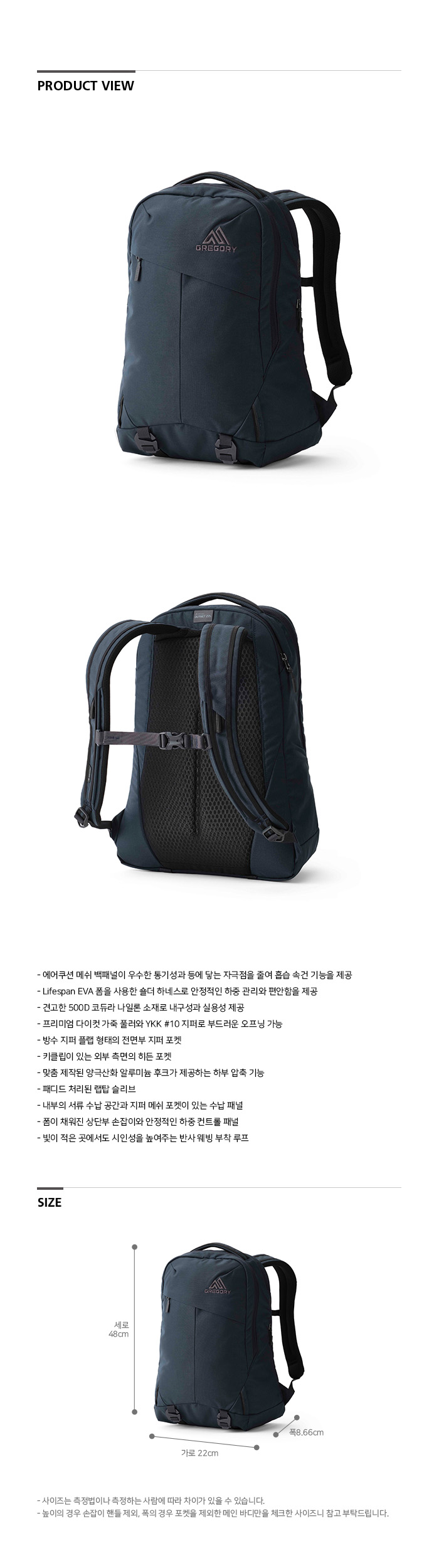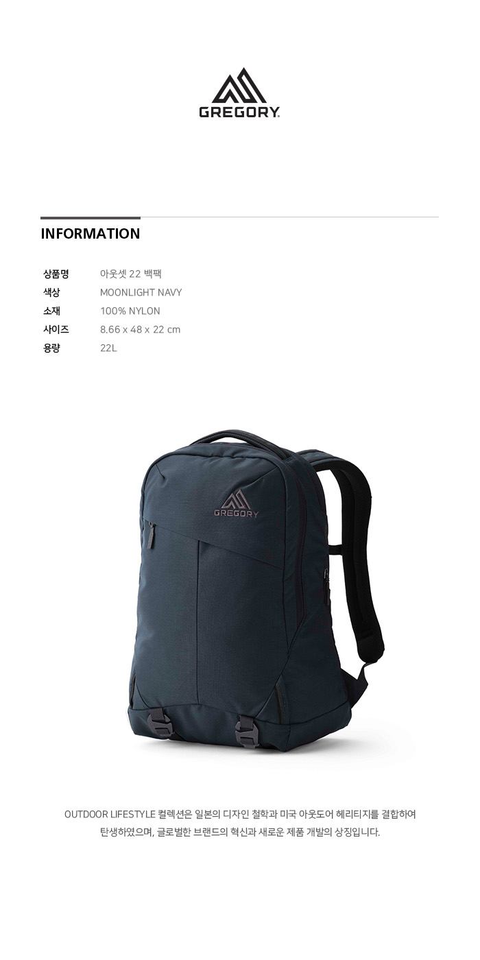 그레고리 아웃셋22 백팩 문라이트 네이비