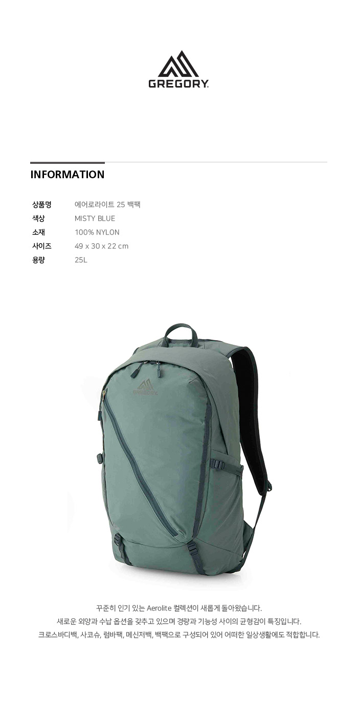 그레고리 에어로라이트25 백팩 미스티 블루