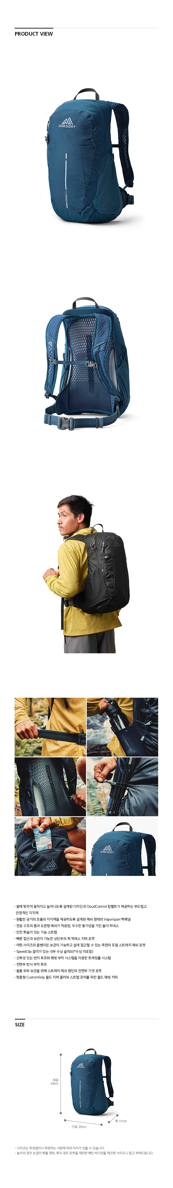 그레고리 아리오20 백팩 스타라이트 블루 가벼운등산배낭 당일산행가방