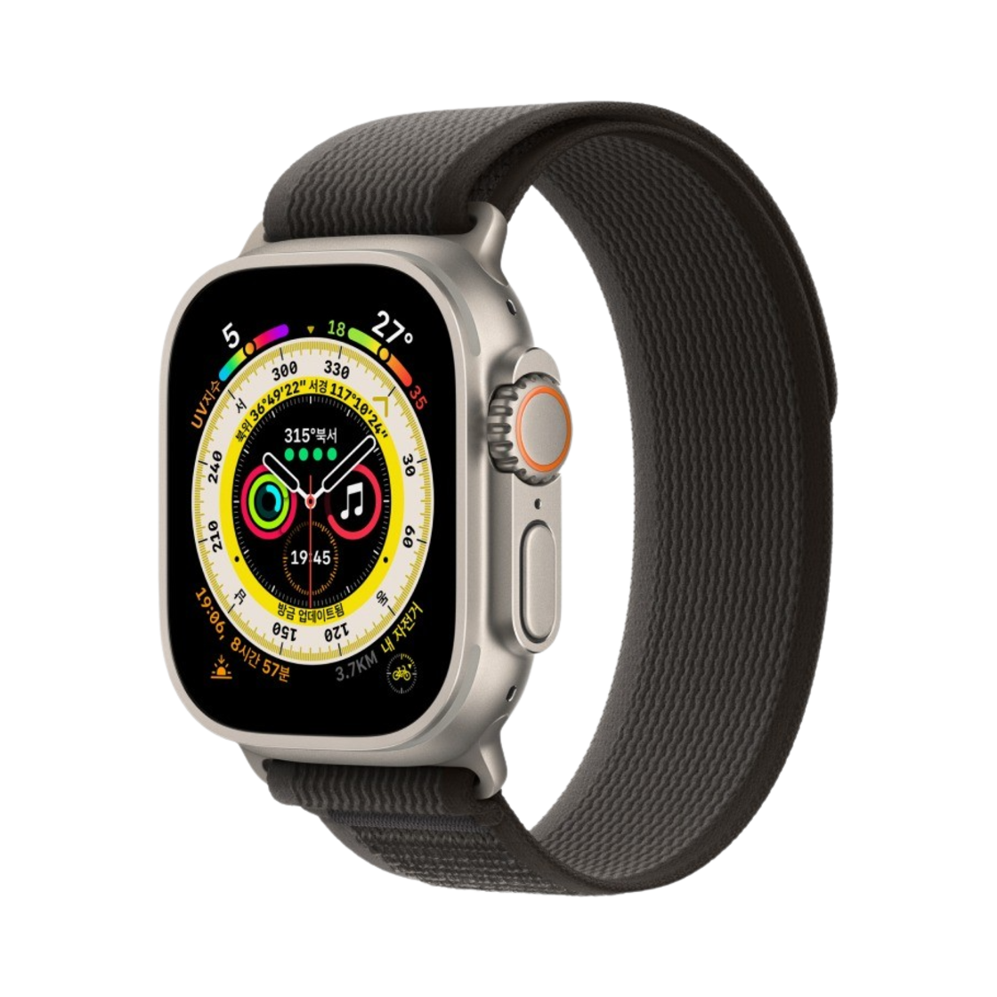 애플 워치 울트라 49mm 티타늄 케이스 트레일 루프 M/L 블랙 그레이 (국내 정식 발매 제품)