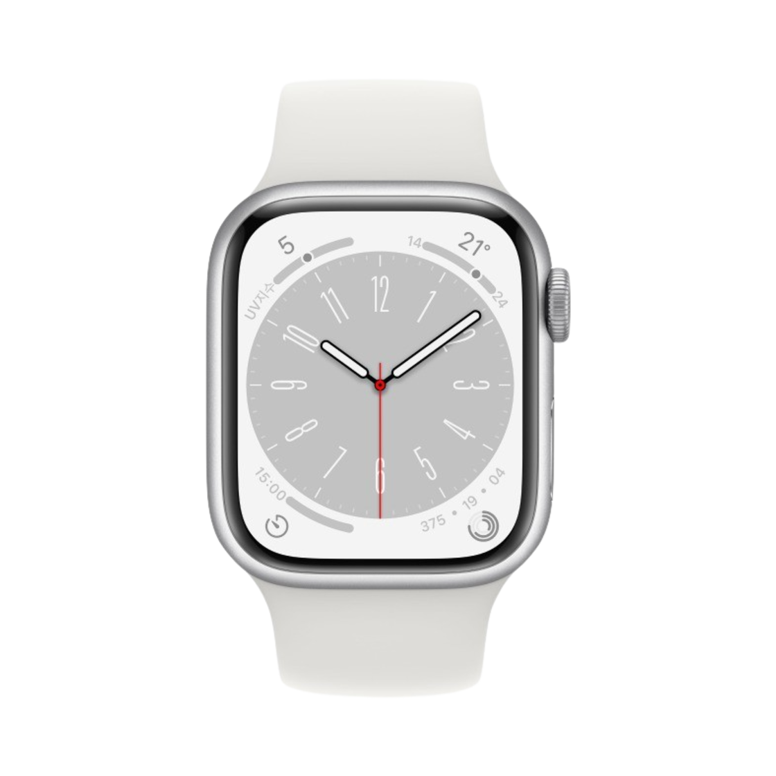 애플 워치 8 41mm GPS 실버 알루미늄 케이스 스포츠 밴드 화이트 (국내 정식 발매 제품)