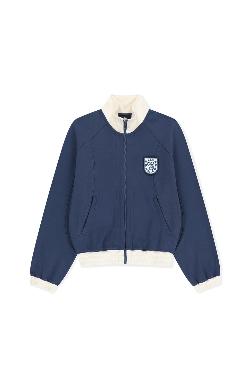 · 트랙 자켓 · 면,폴리에스터 혼방 특양면 원단 사용 · 폴리에스터 원사와 면 원사를 적절히 혼방하여 가볍고 스포티한 느낌 · 유연하고 소프트한 터치감 · 활동성을 고려하여 설계된 절개 라인 · 몸판 밑단, 소맷단 배색으로 밴딩 처리 · 전면, 포켓에 YKK 지퍼 사용 · 탈부착 가능한 두가지 타입의 와펜 Cotton 100% Made in China Female - Small/168cm
