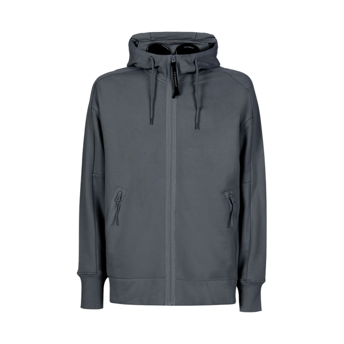 C.P. Company Diagonal Raised Fleece Zipped Goggle Hoodie Grey - 22SS