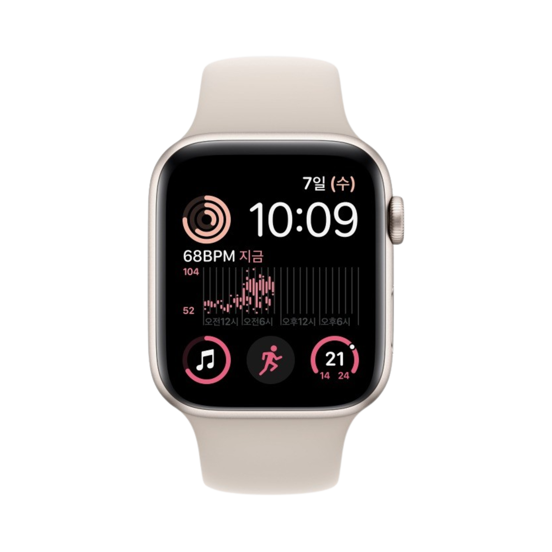 애플 워치 SE 44mm GPS 스타라이트 알루미늄 케이스 스포츠 밴드 스타라이트 (국내 정식 발매 제품)