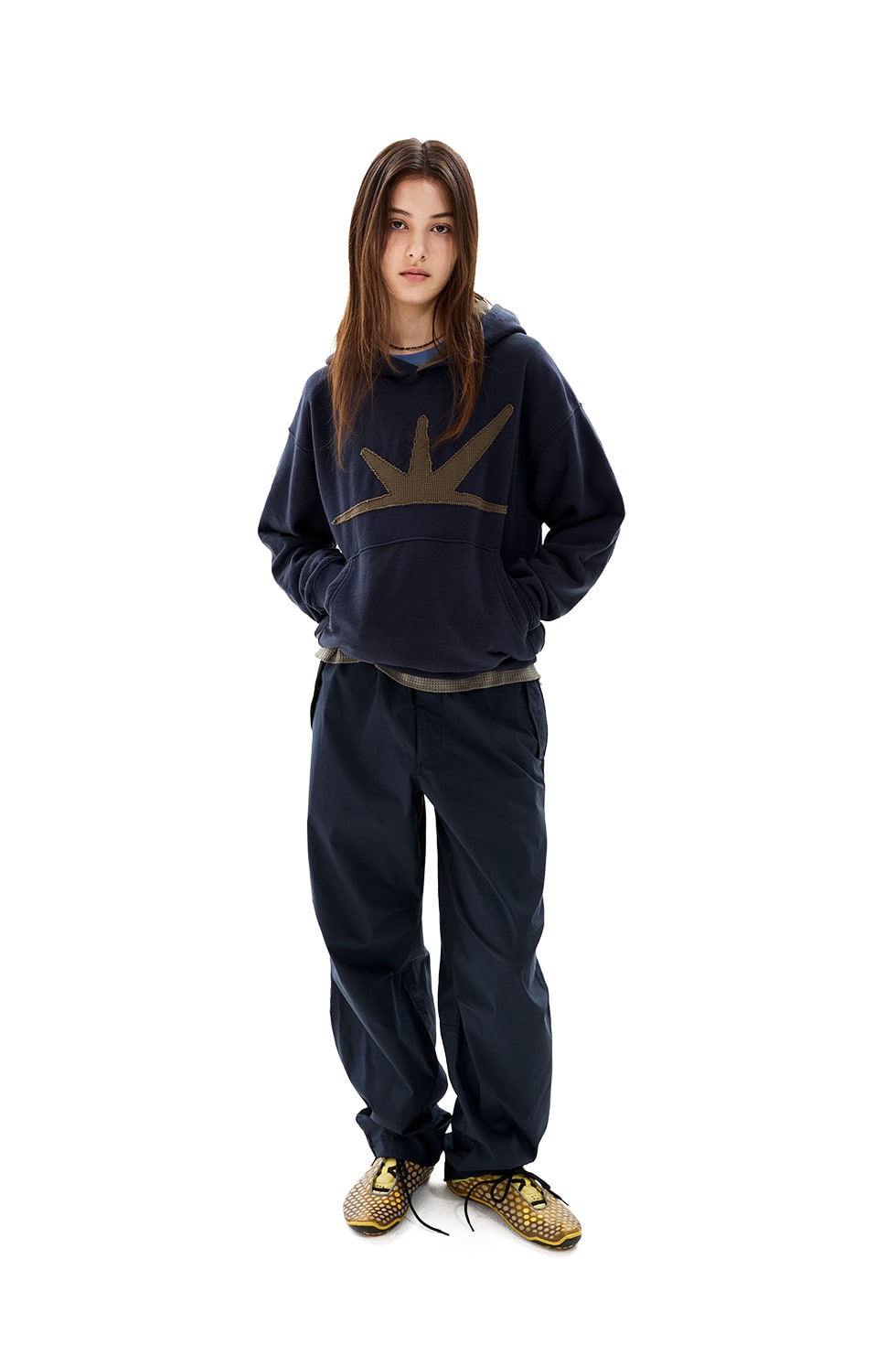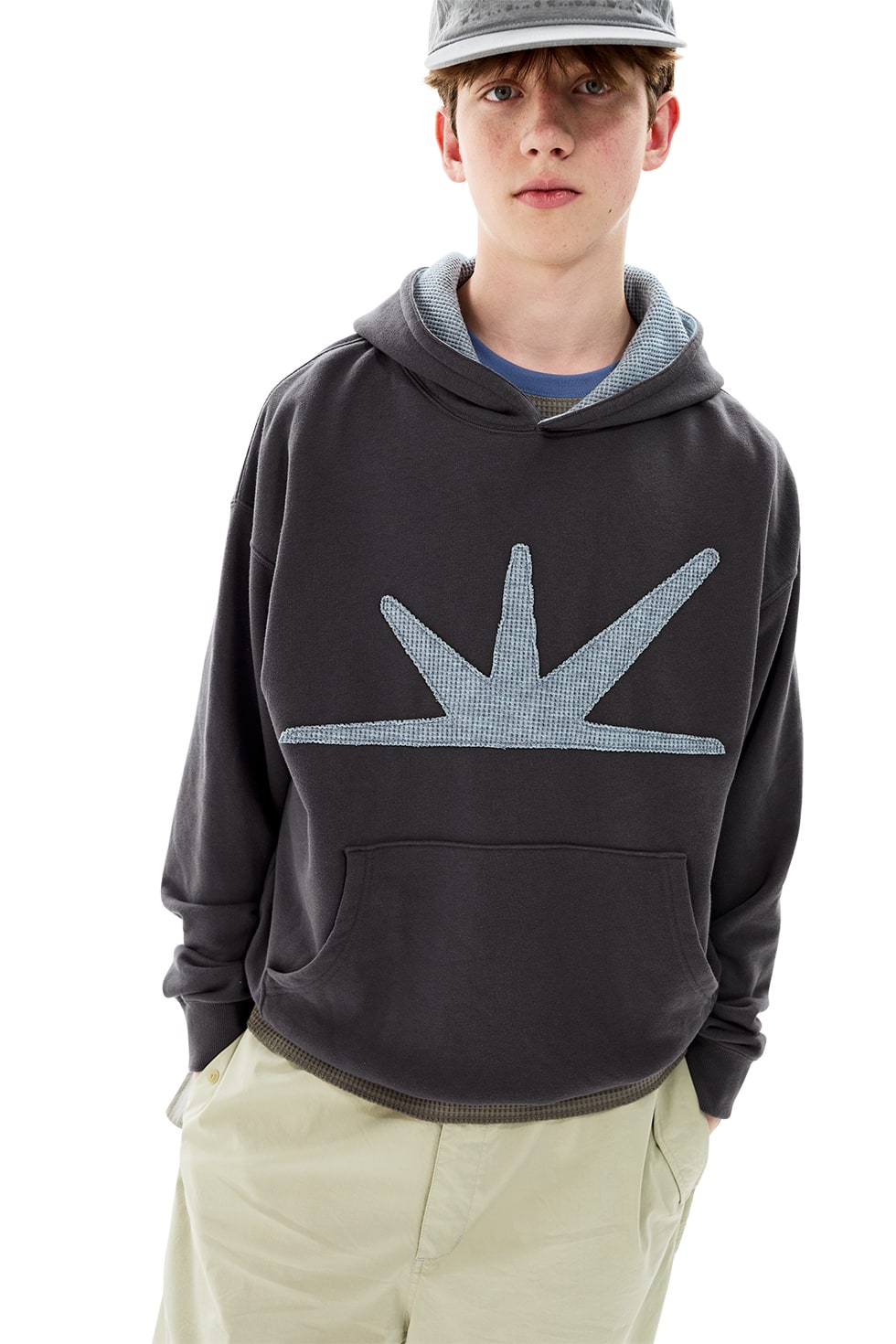 · 데이브레이크 후디 · 면, 폴리에스터 혼방 원단 사용 · 기모 없음 · 폴리에스터 원사와 면 원사를 혼방하여 가볍고 스포티한 느낌 · 유연하고 소프트한 터치감 · 밑단, 소맷단 밴딩 처리 · 캥거루 포켓 · 데이브레이크 심볼 배색 원단 아플리케 Cotton 54% Polyester 46% Made in China Male - Large/181cm,Female - Small/168cm