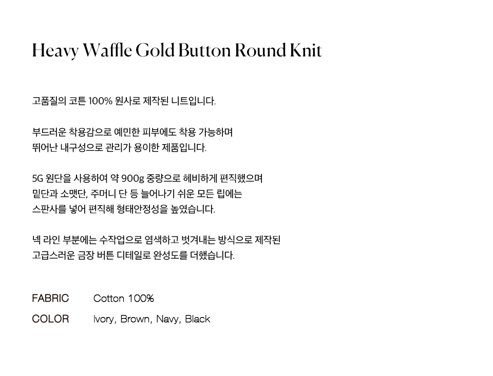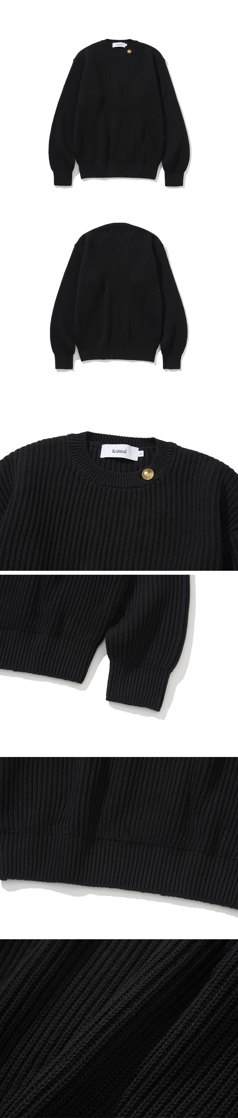 니티드 헤비 와플 골드 버튼 라운드 니트 블랙