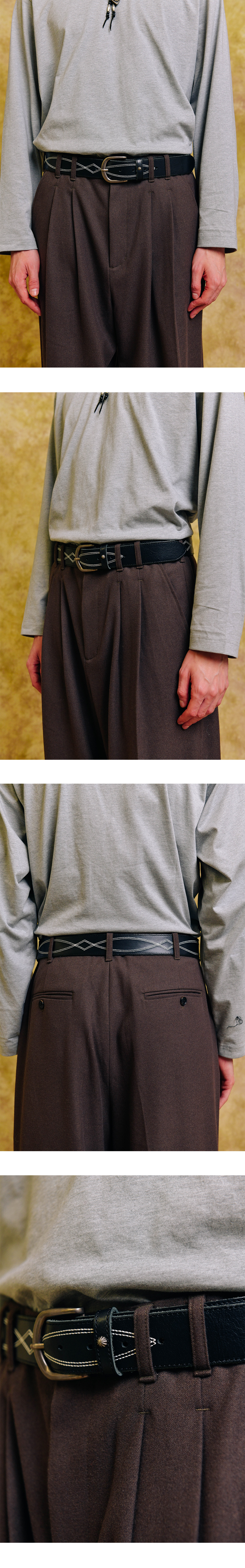 OGARP Cross Embroidery Leather Belt Black