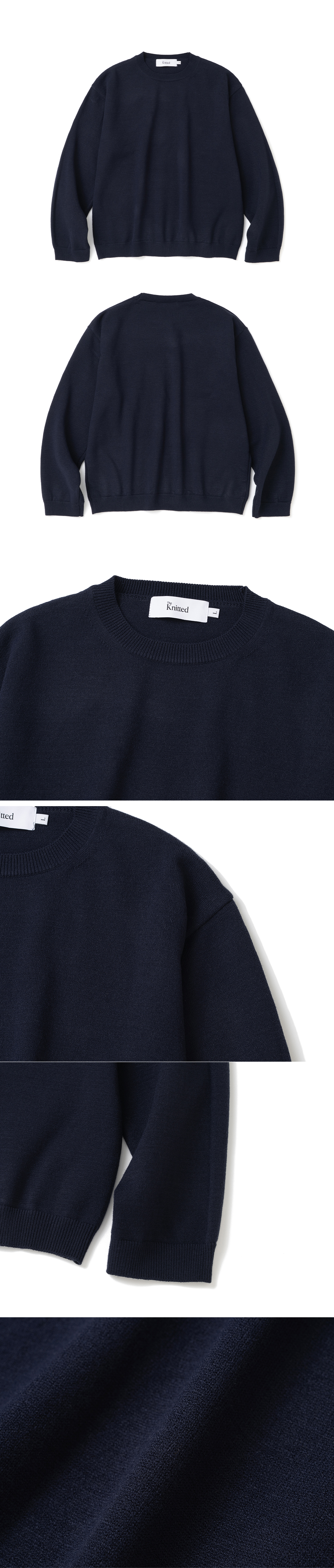 니티드 베이직 에센셜 크롭 라운드 니트 네이비