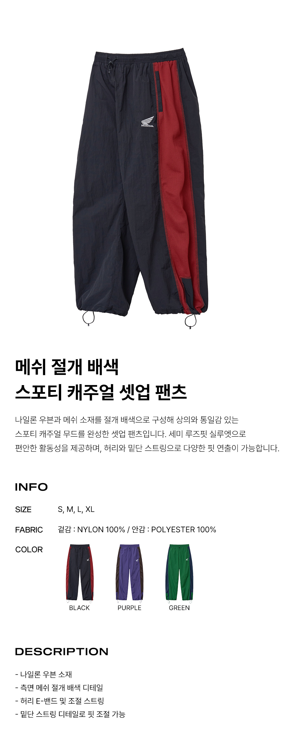 혼다 나일론 메시 블록 팬츠 블랙