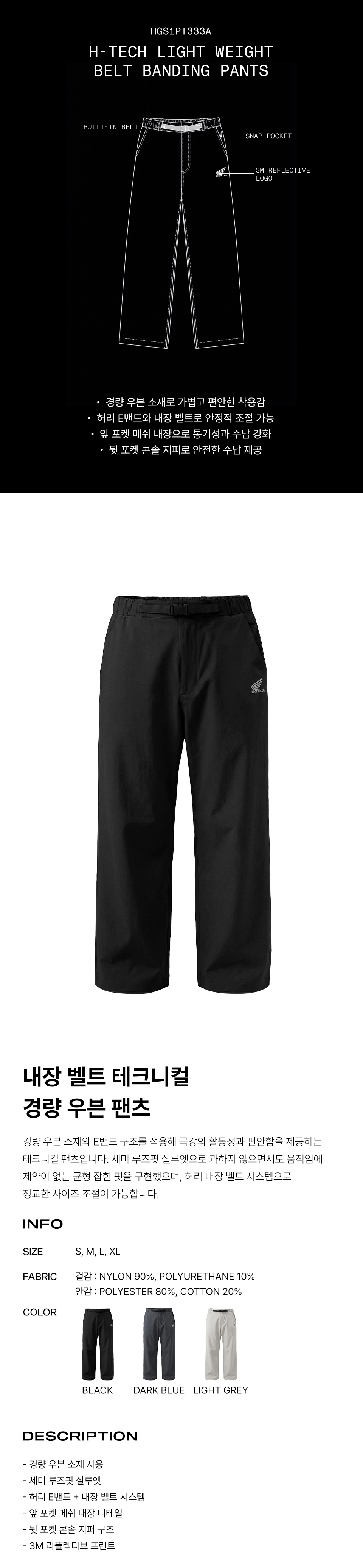 혼다 H-Tech 라이트 웨이트 벨트 밴딩 팬츠 블랙