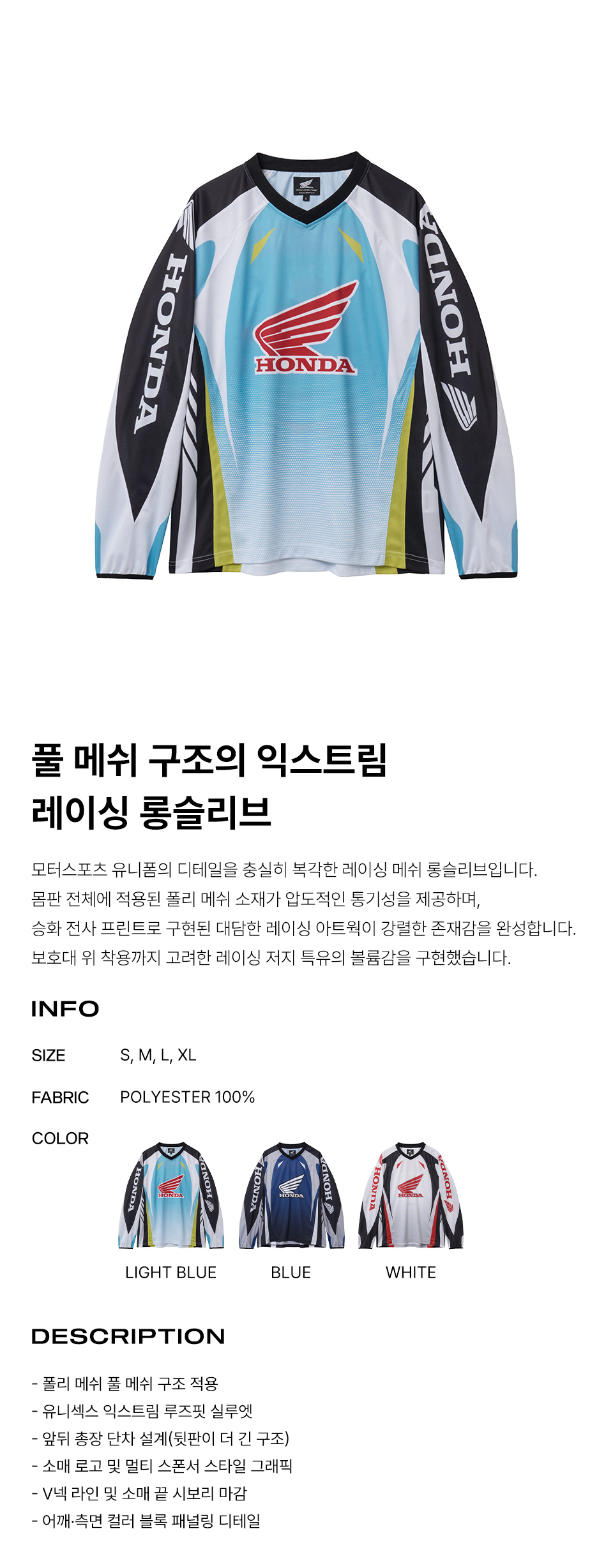 [KREAM 단독] Honda Mesh Motorcycle Jersey Light Blue