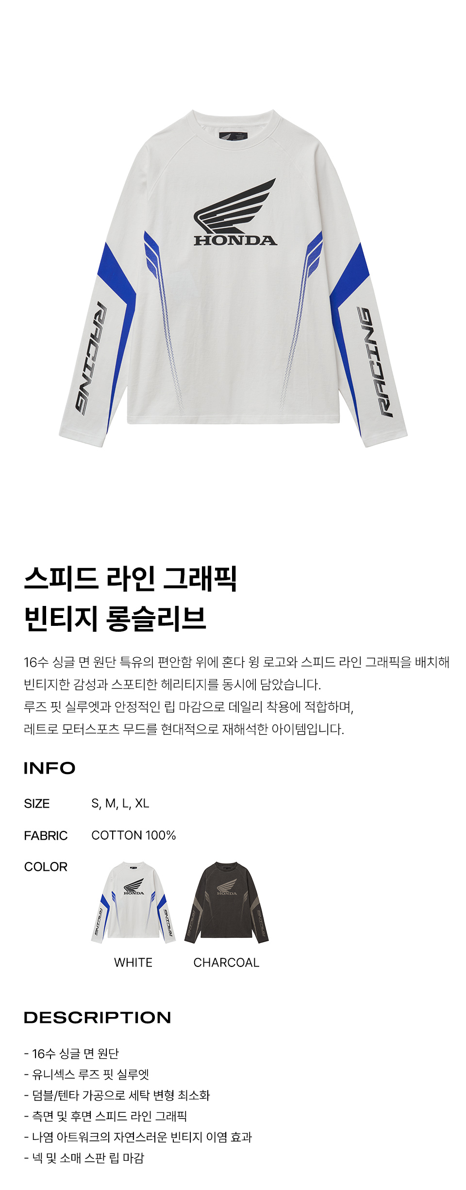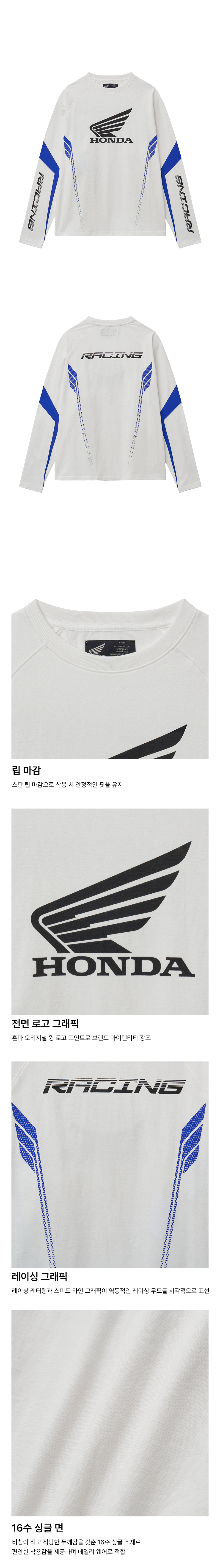 [KREAM 단독] 혼다 모터사이클 루즈핏 롱슬리브 화이트
