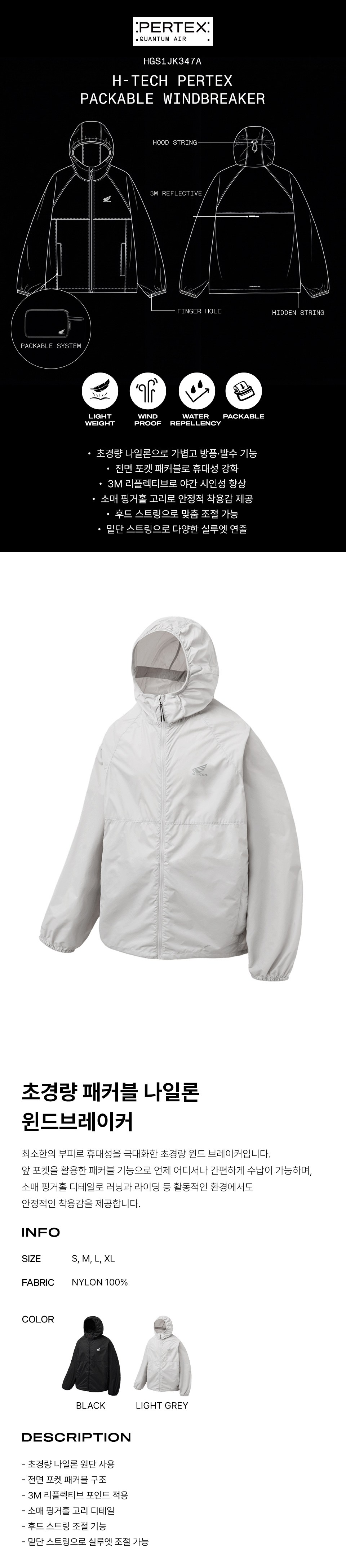 혼다 H-Tech 퍼텍스 패커블 윈드브레이커 그레이