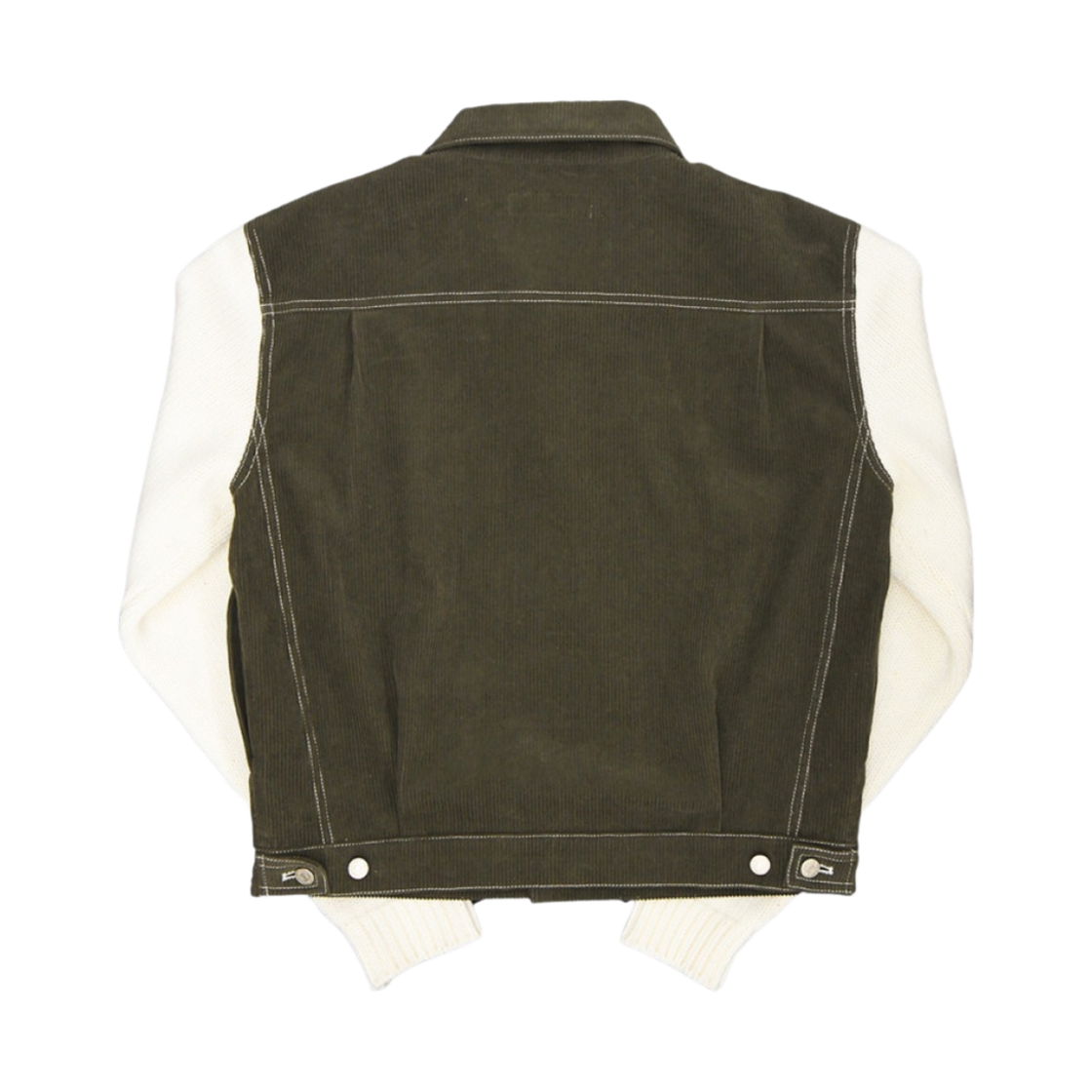 The Museum Visitor Hybrid Knit Trucker Jacket Olive Ivory - 22PS
