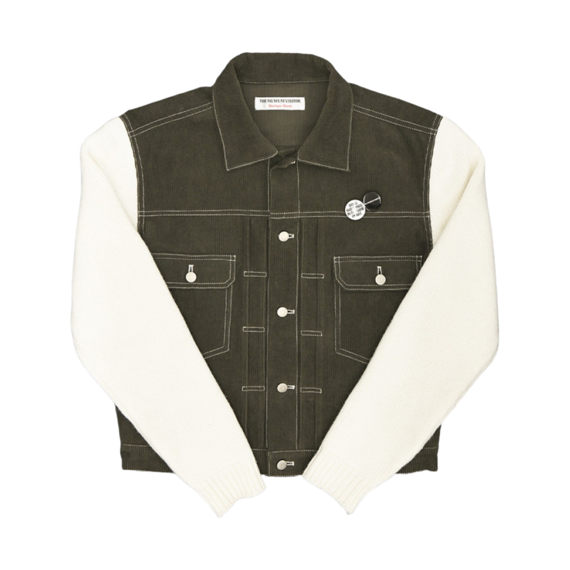 더뮤지엄비지터 하이브리드 니트 트러커 자켓 올리브 아이보리 - 22PS