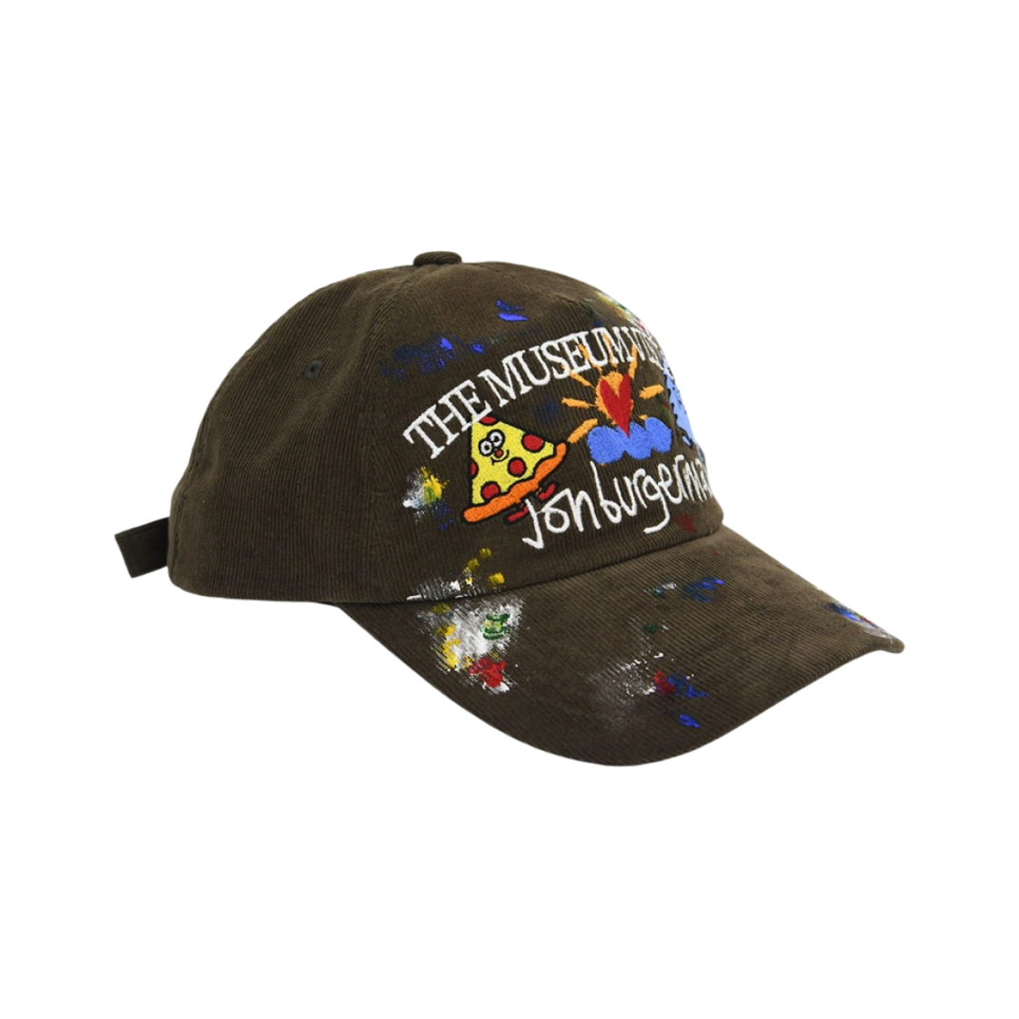 The Museum Visitor x Jon Burgerman Hand Painted Pizza & Poch Corduroy Ball Cap Brown
