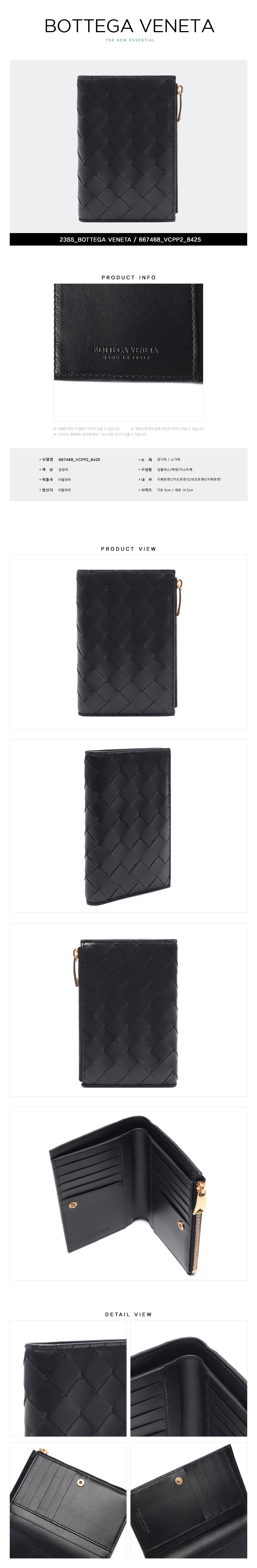 [20% 쿠폰] 보테가 베네타 미디움 폴더형 지퍼 지갑 블랙