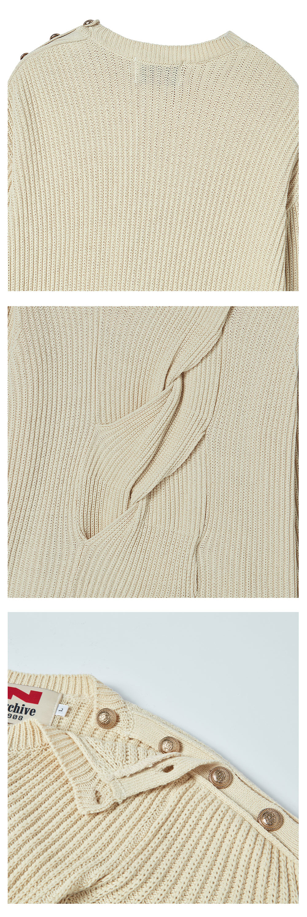 엔 아카이브 시그니처 케이블 코튼 니트 아이보리