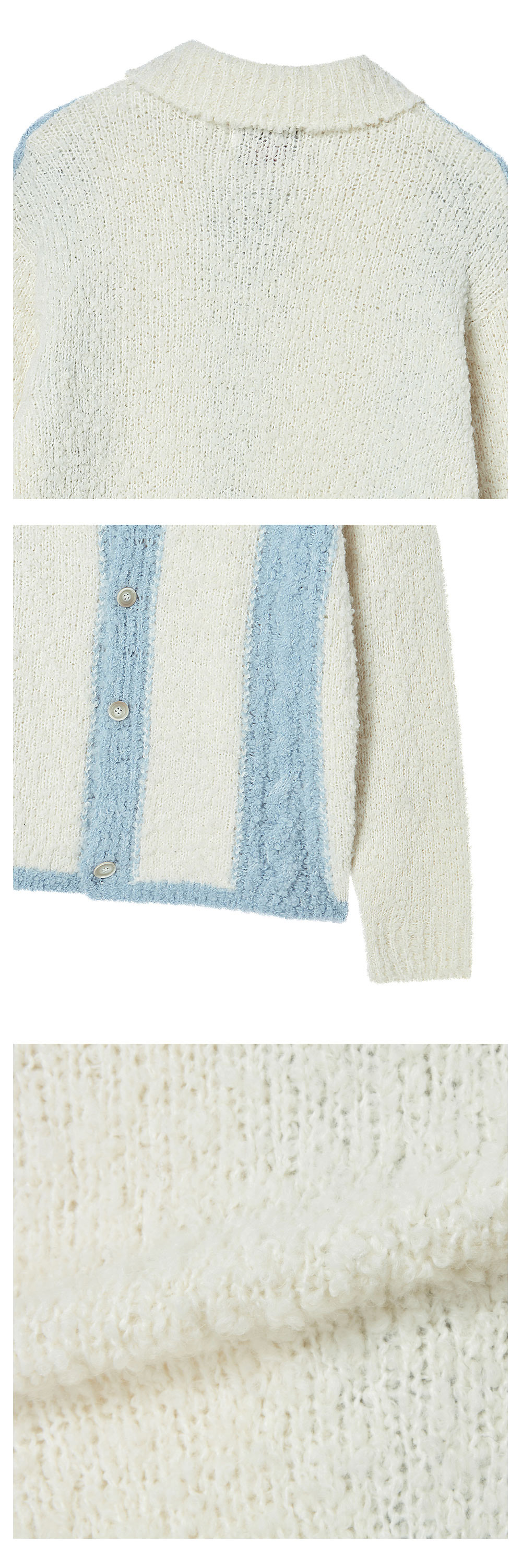 엔 아카이브 텍스처 스트라이프 폴로 가디건 스카이 블루