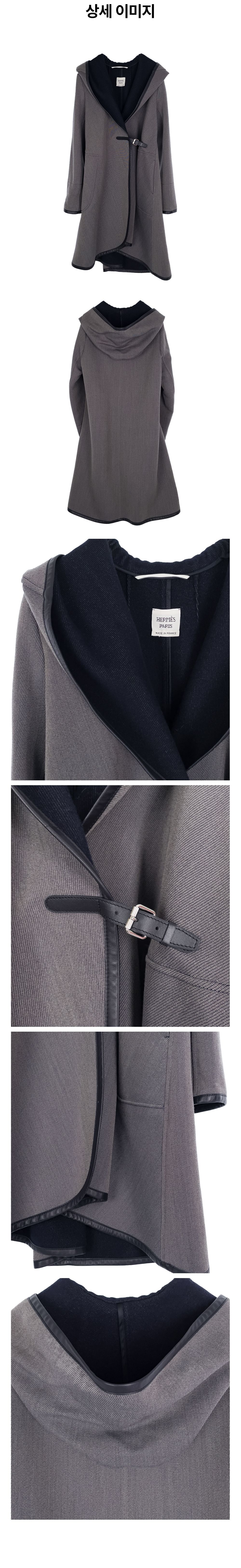 에르메스 레더트리밍 후드 코트 34 그레이/네이비(6HA0222)