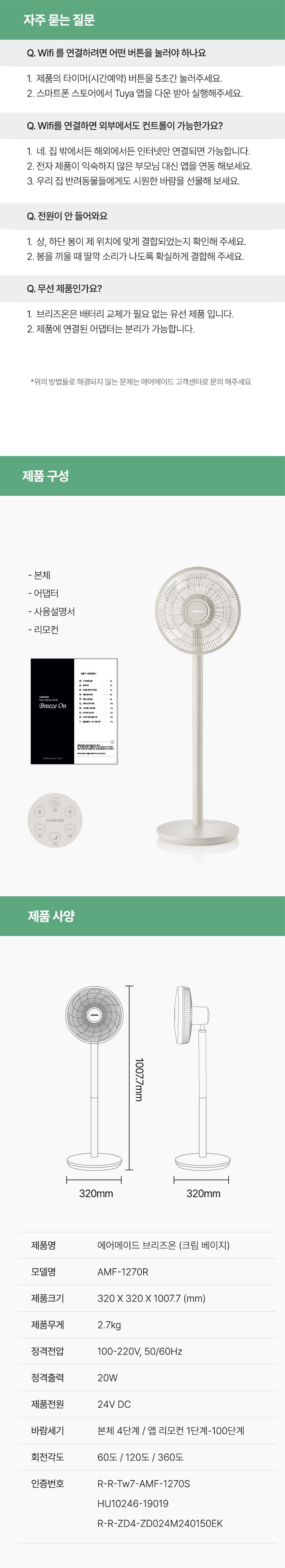 에어메이드 360도 100단계 무소음 바람! 서큘레이터형 선풍기 브리즈온 플러스 1270R 베이지