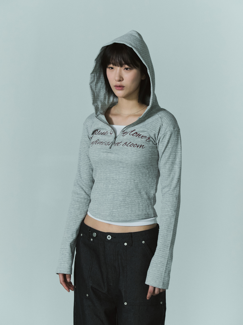 블루 선플라워 크롭 후드 하프집업 멜란지 그레이