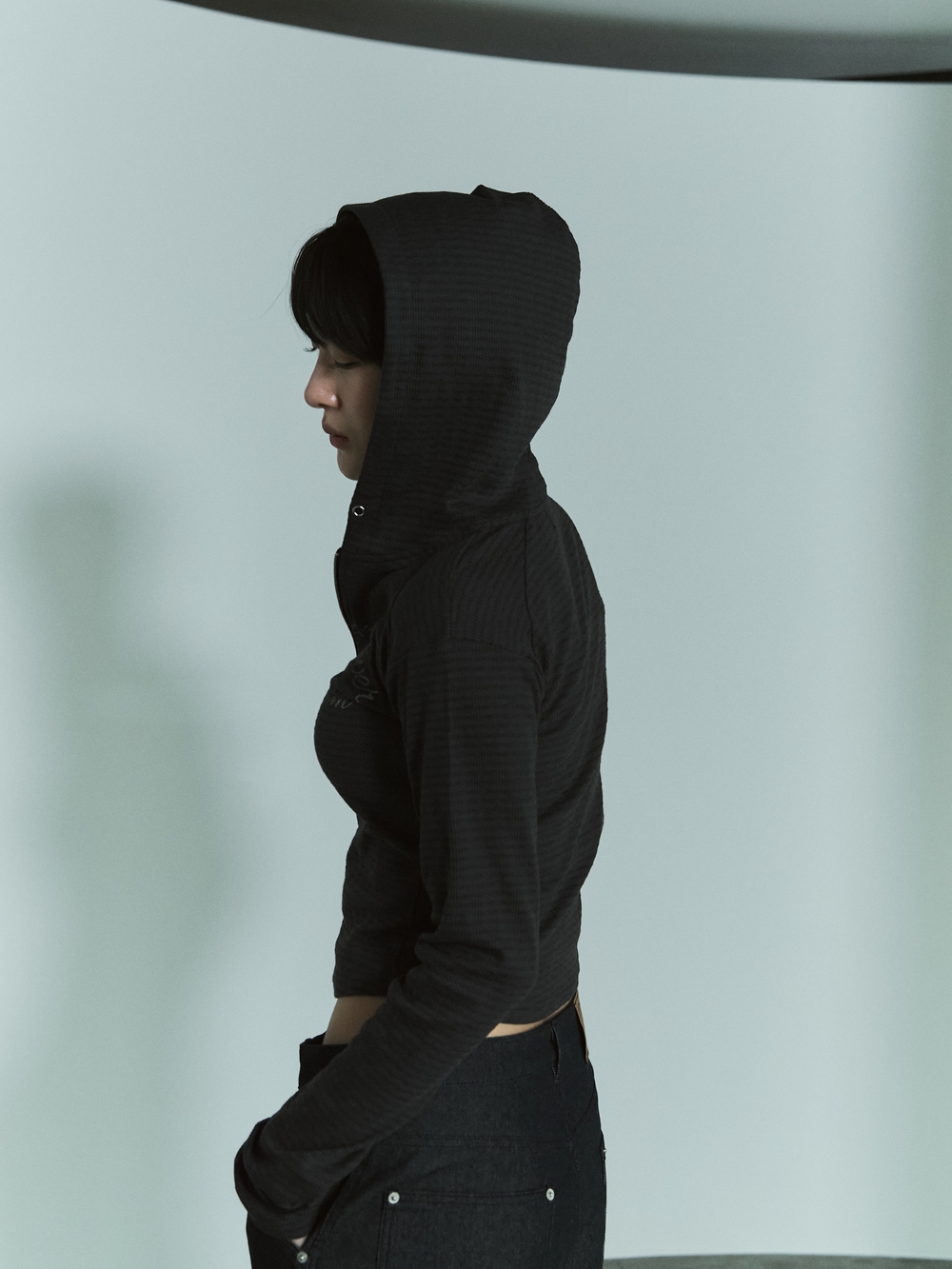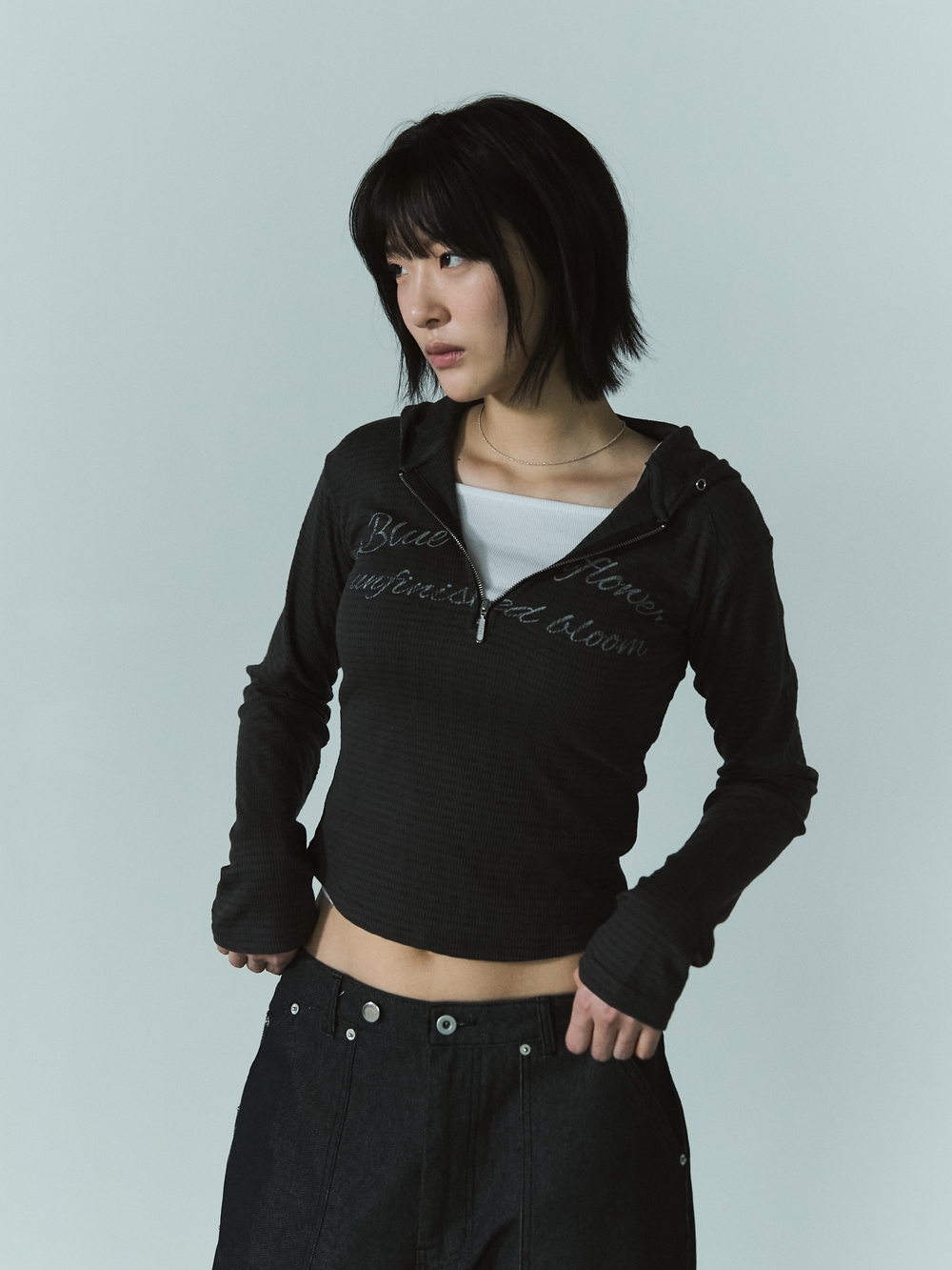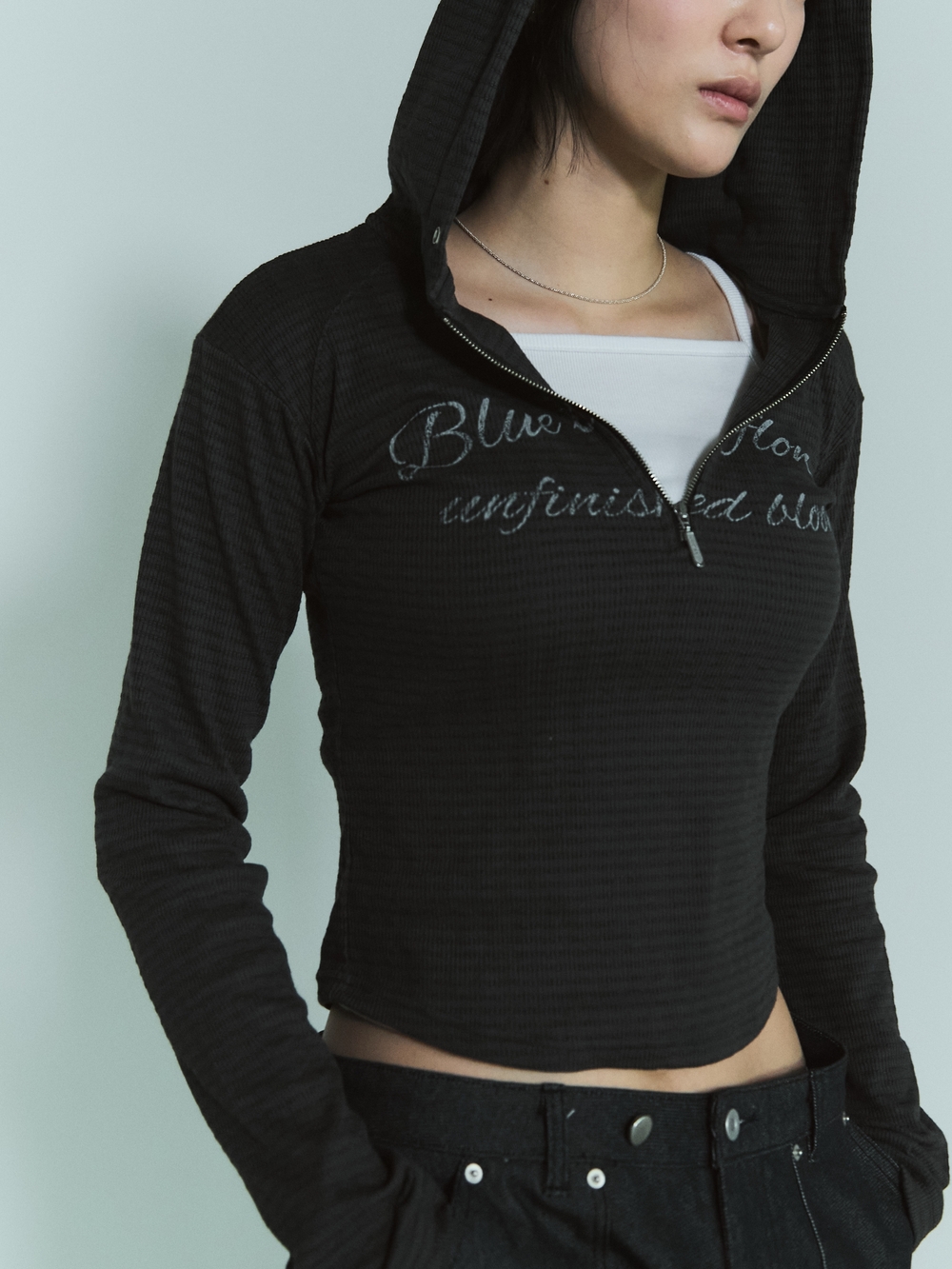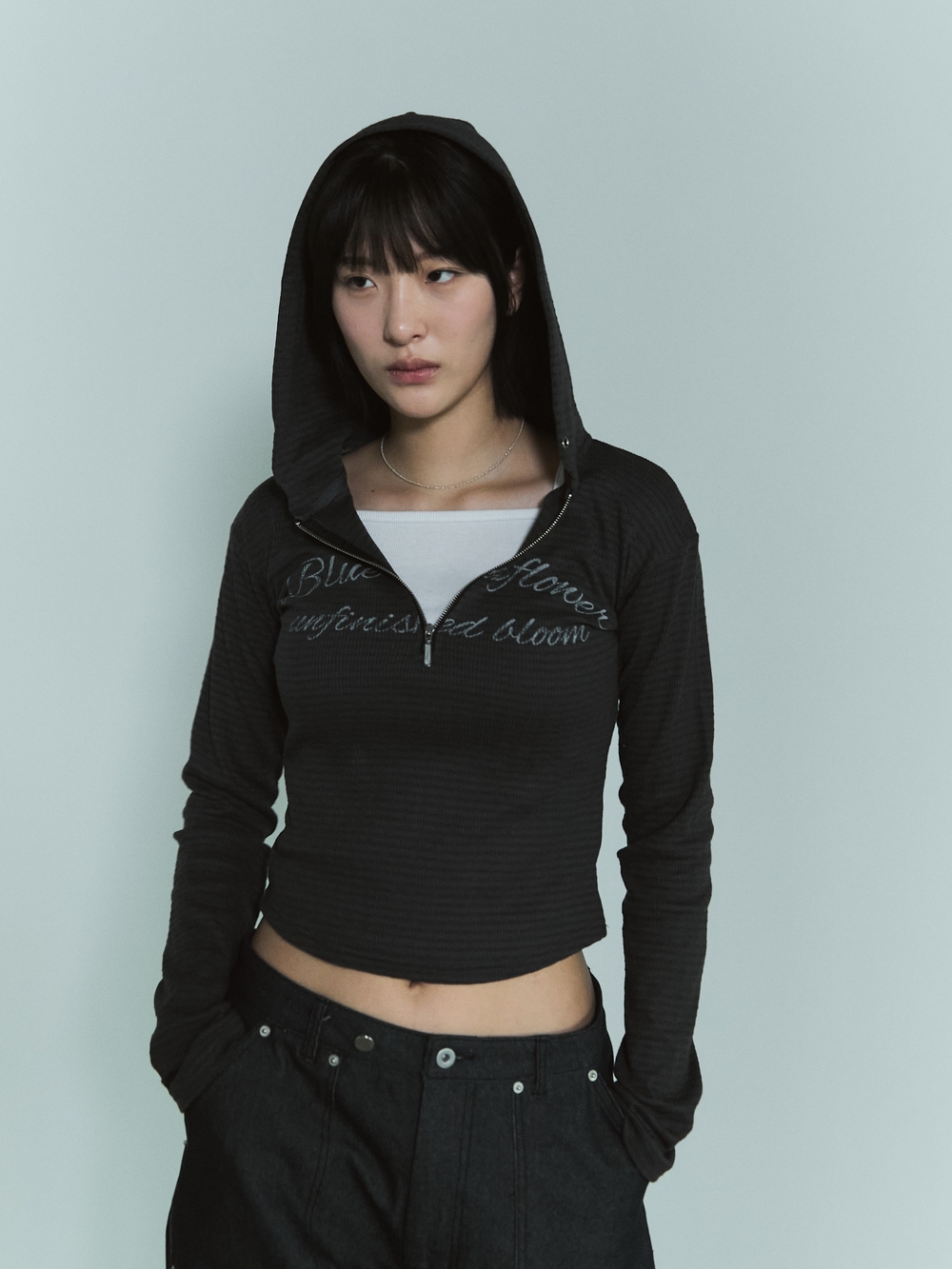 Blue Sunflower Crop Hood Half-Zip Charcoal
