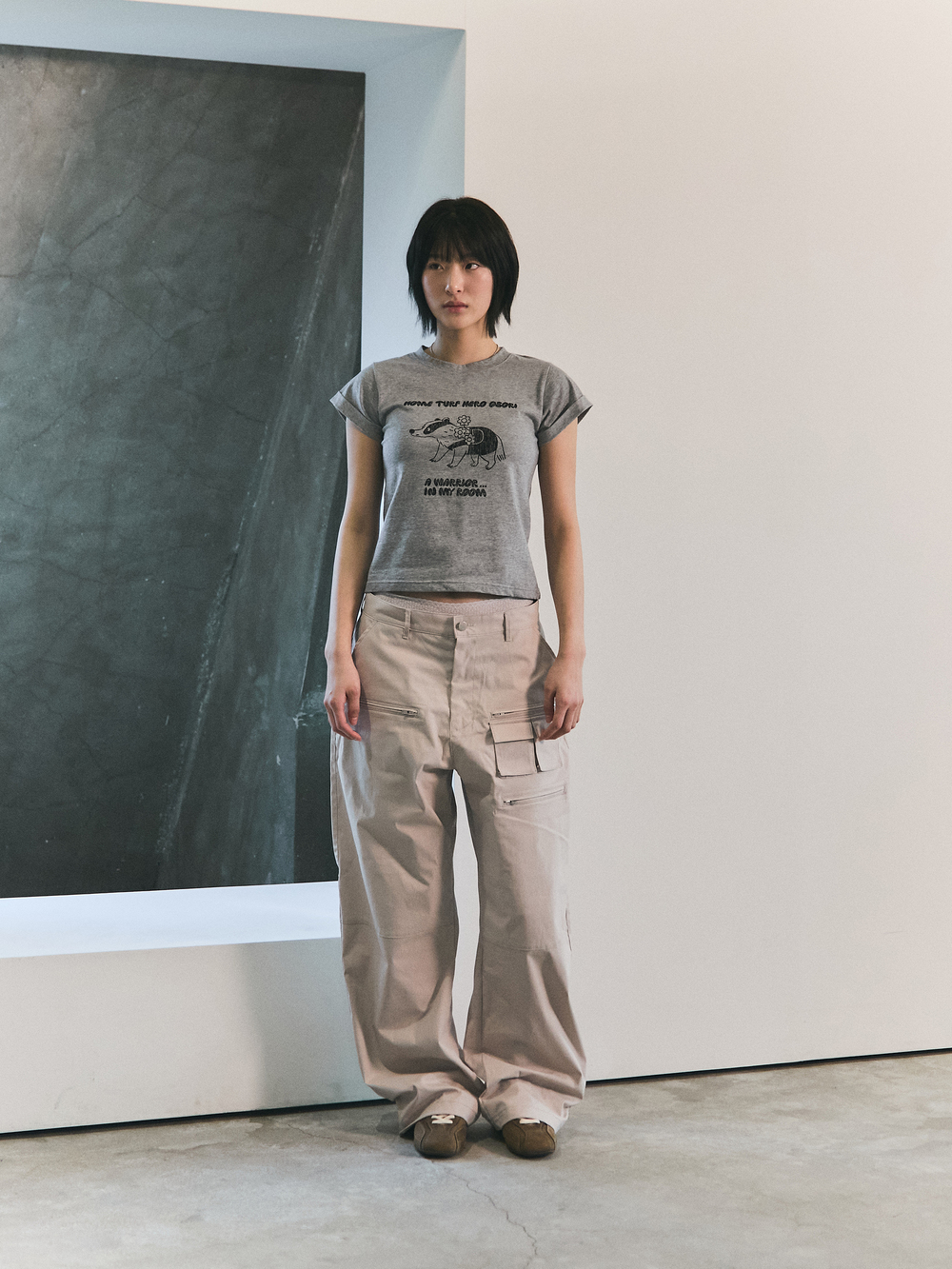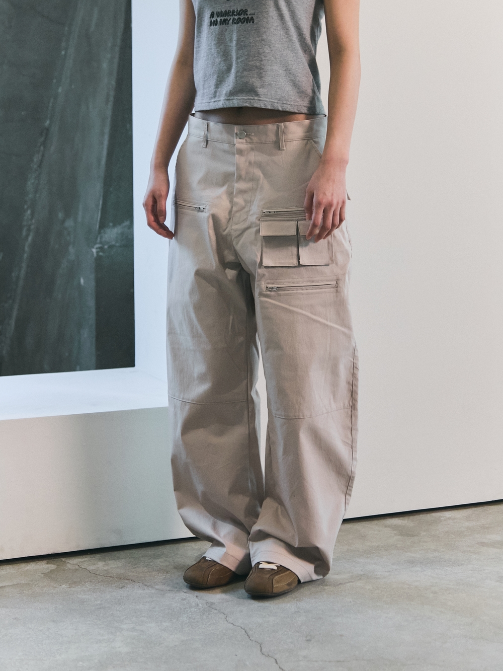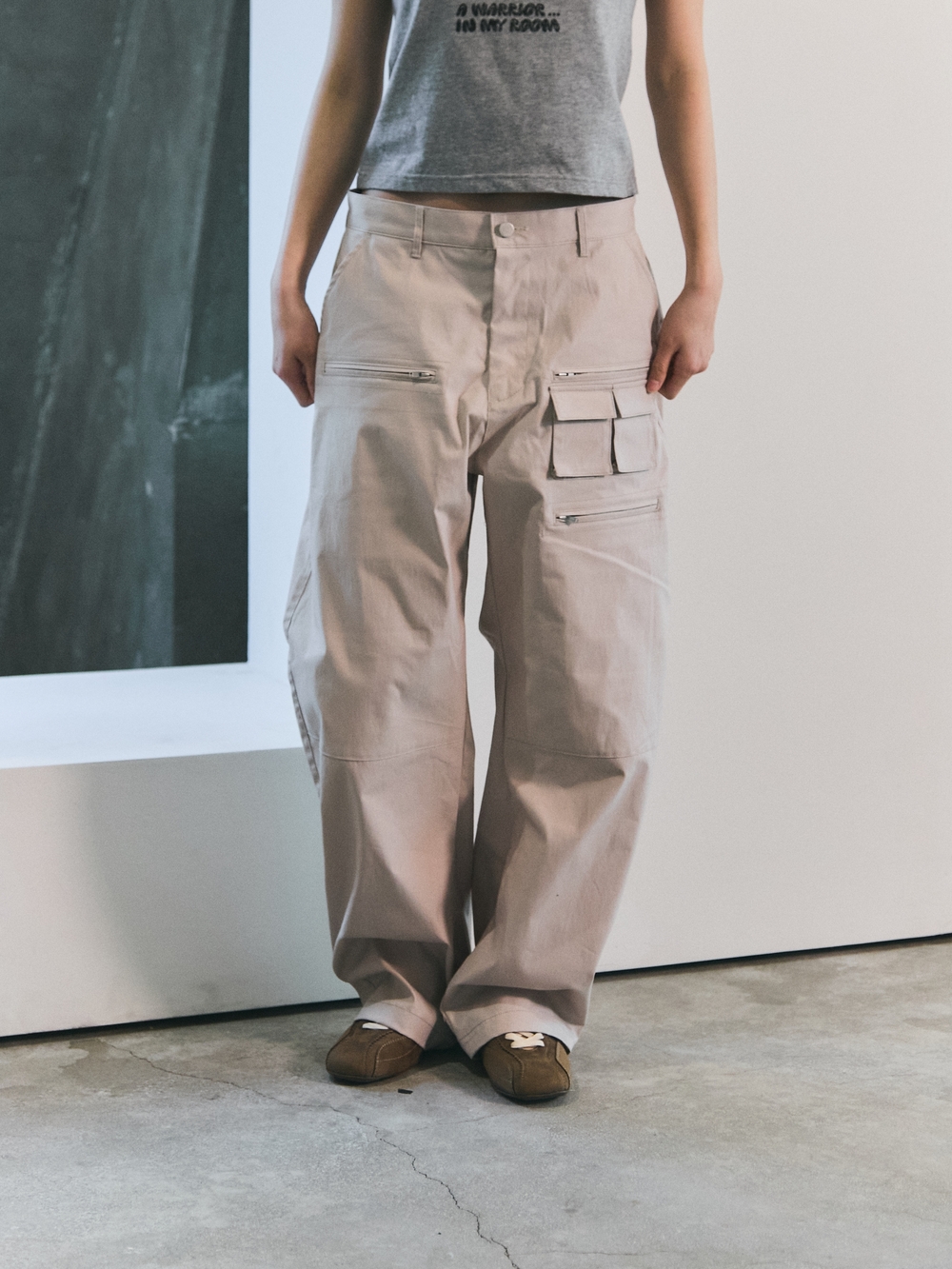블루 선플라워 오버 포켓 카고 팬츠 베이지