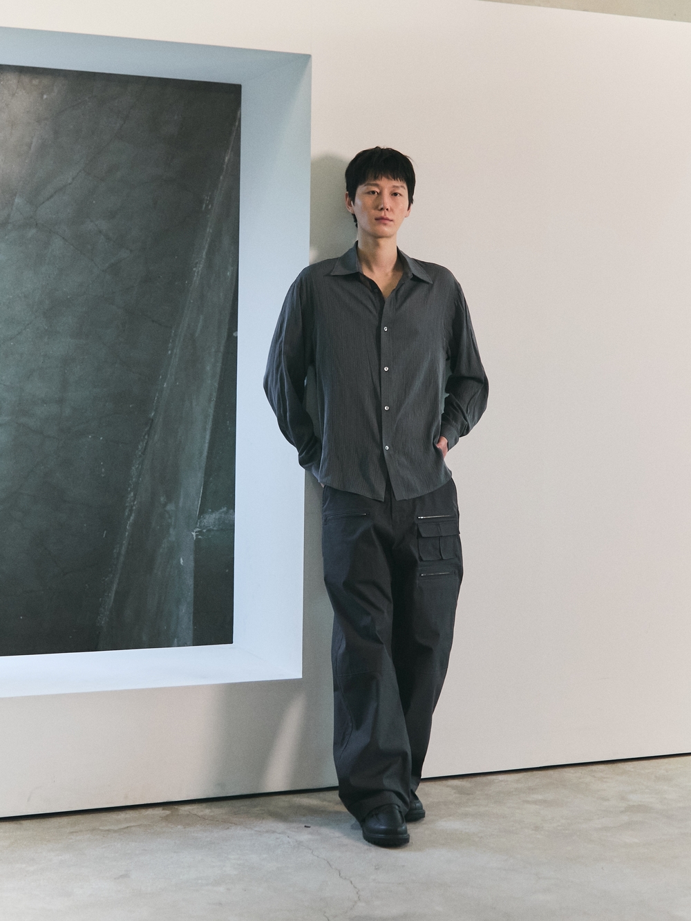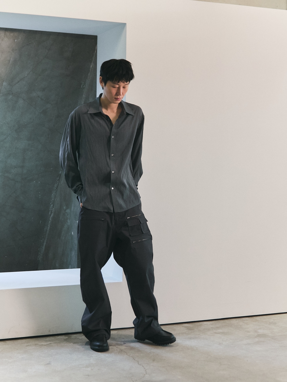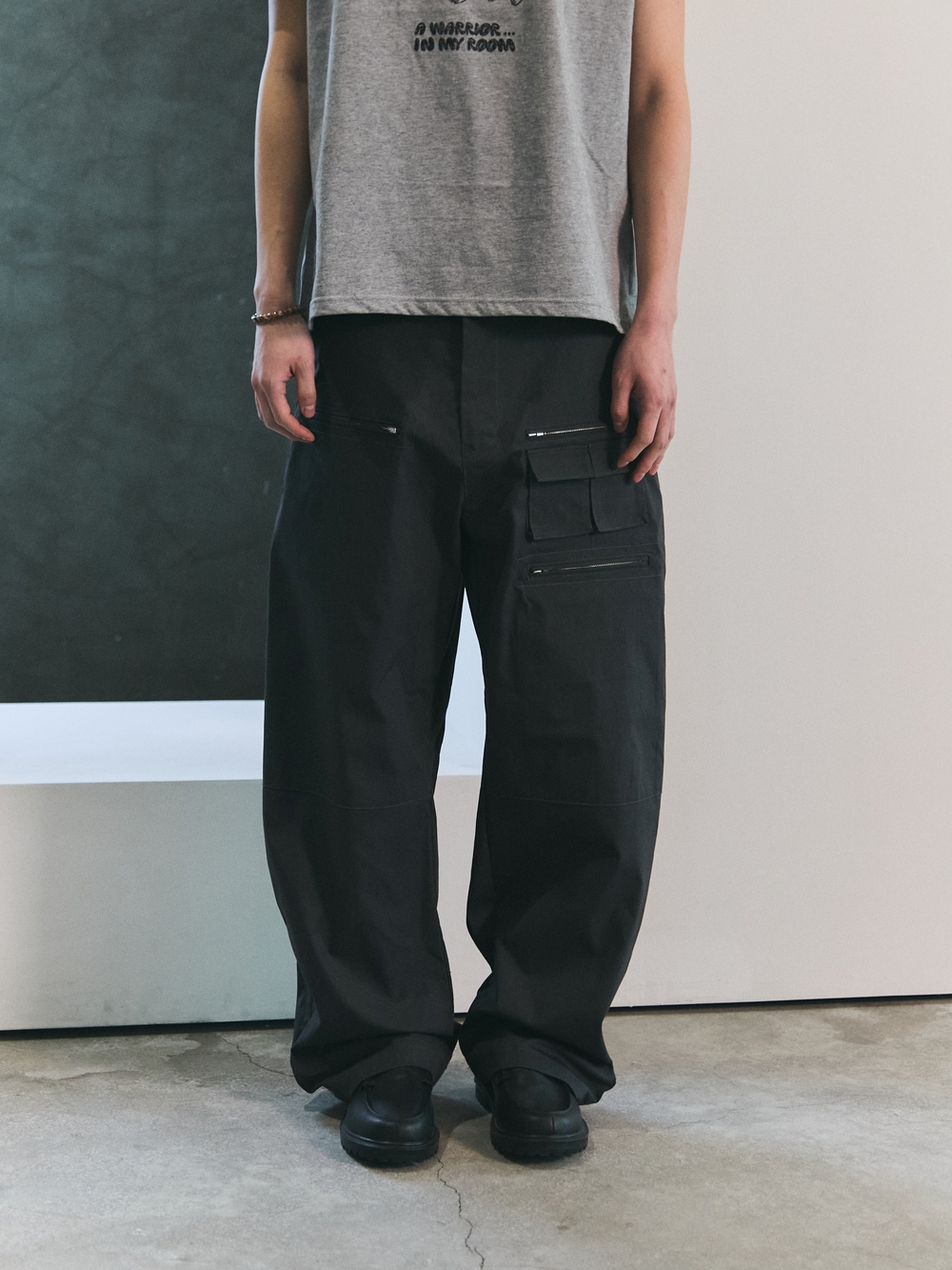 블루 선플라워 오버 포켓 카고 팬츠 차콜