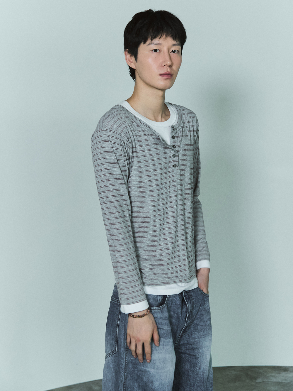 블루 선플라워 더블 레이어드 헨리넥 멜란지 그레이