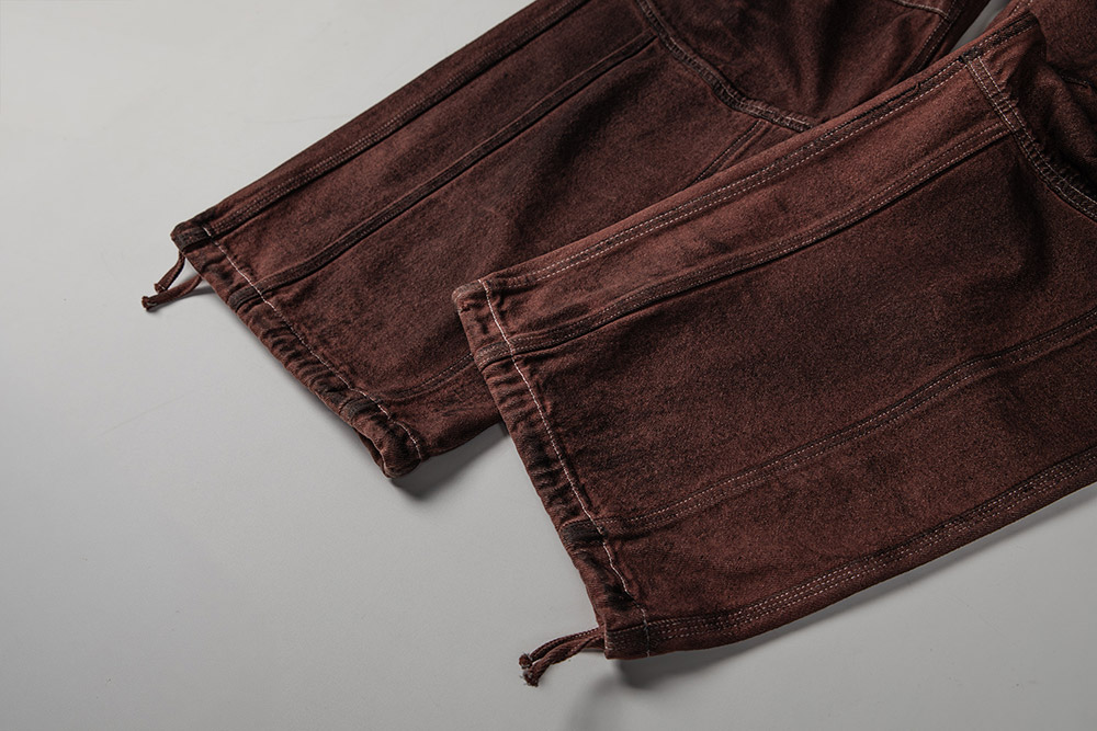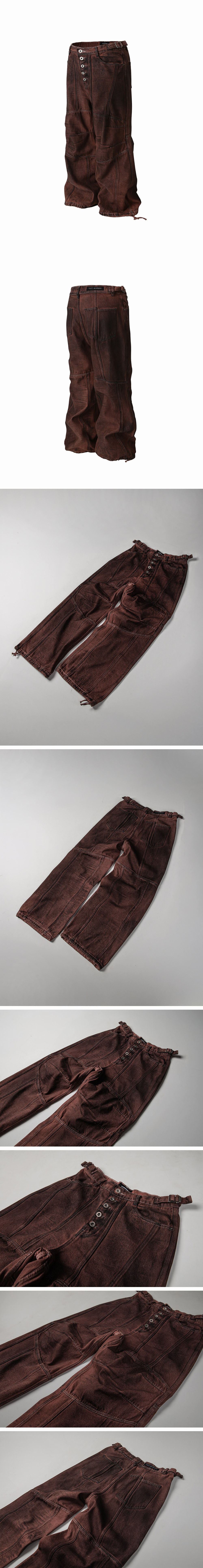 Fabric : 100% Cotton - 와이드 핏 - 전, 후면 절개 및 다트 포인트 - 허리 조절 비조 - 밑단 조절 스트링 - 빈티지 워싱 - 핸드메이드 스프레이 공정 • 제조국 : 대한민국 • 세탁 방법 : 뒤집어 단독 찬물 세탁, 건조기 사용 금지 (드라이 클리닝 권장) Size Spec (CM) M : 허리 41, 허벅 35, 밑위 35, 엉덩이 56, 밑단 31, 총장 109 L : 허리 44, 허벅 37, 밑위 36, 엉덩이 58, 밑단 32, 총장 111