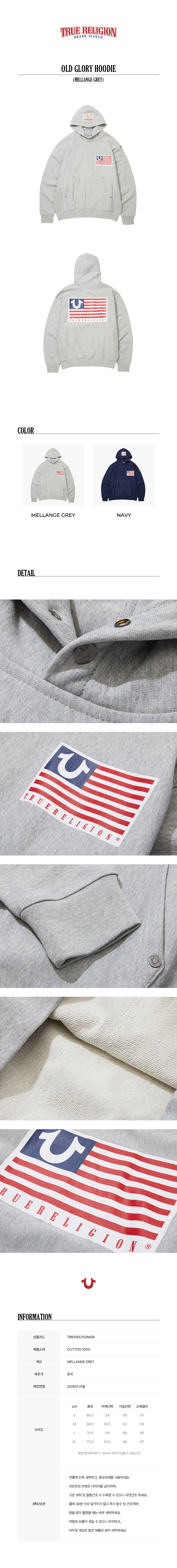 트루릴리젼 올드 글로리 후디_멜란지 그레이