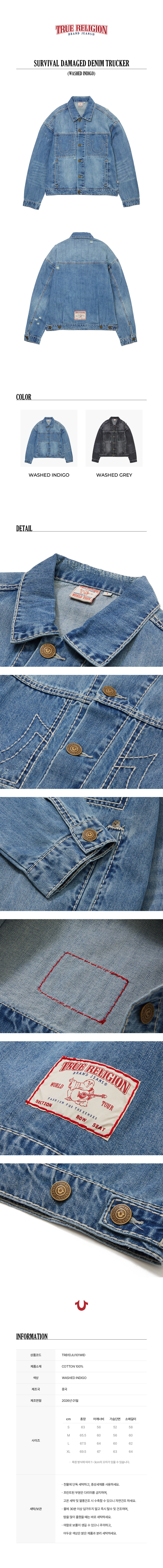 트루릴리젼 서바이벌 데미지 데님 트러커_워시드 인디고