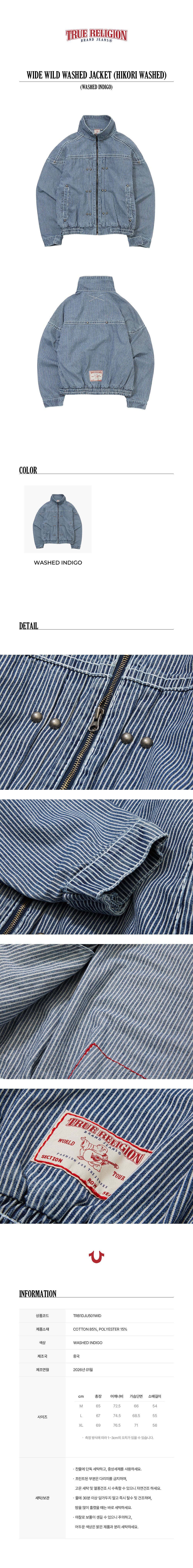 트루릴리젼 와이드 와일드 워시드 자켓_워시드 인디고