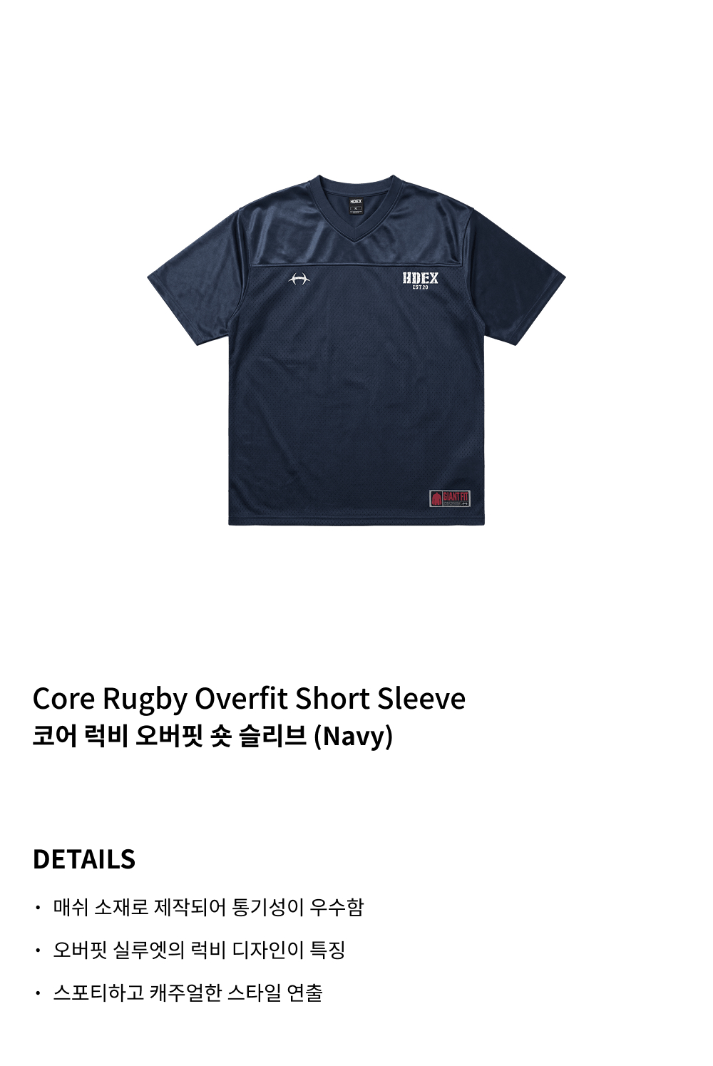 에이치덱스 코어 럭비 오버핏 숏 슬리브 네이비
