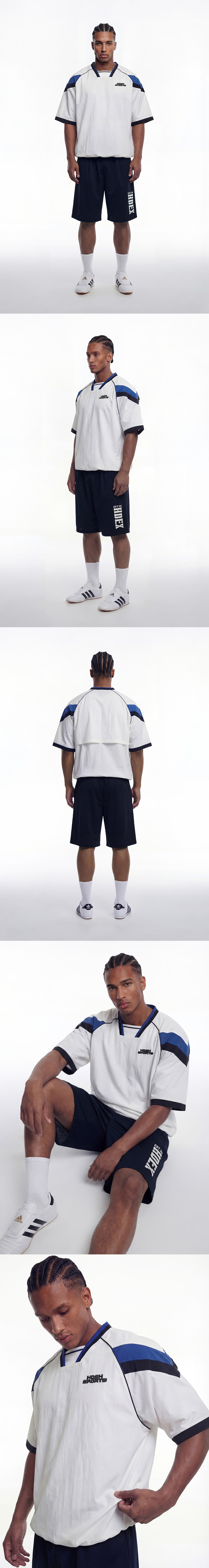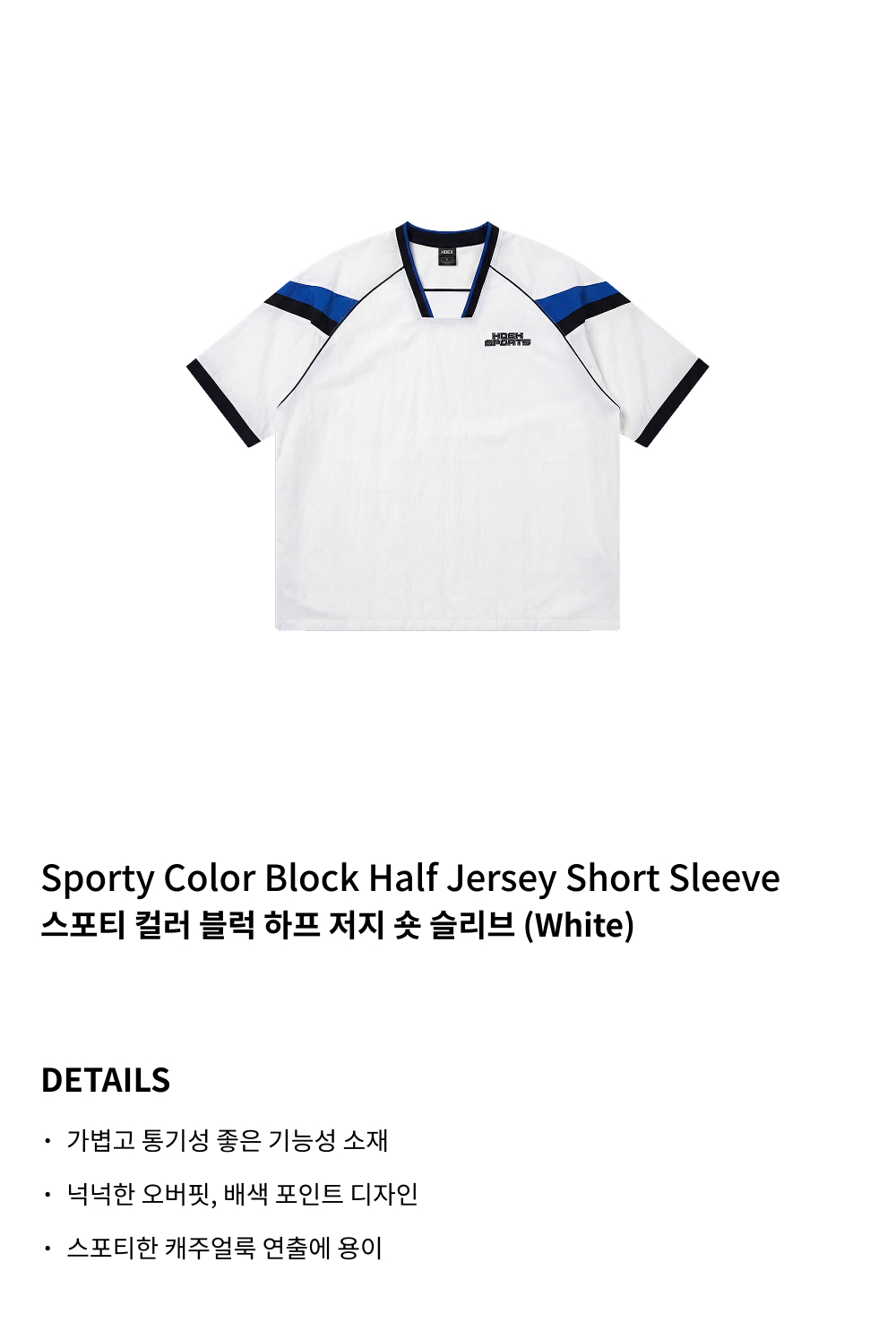 에이치덱스 스포티 컬러 블럭 하프 저지 숏 슬리브 화이트