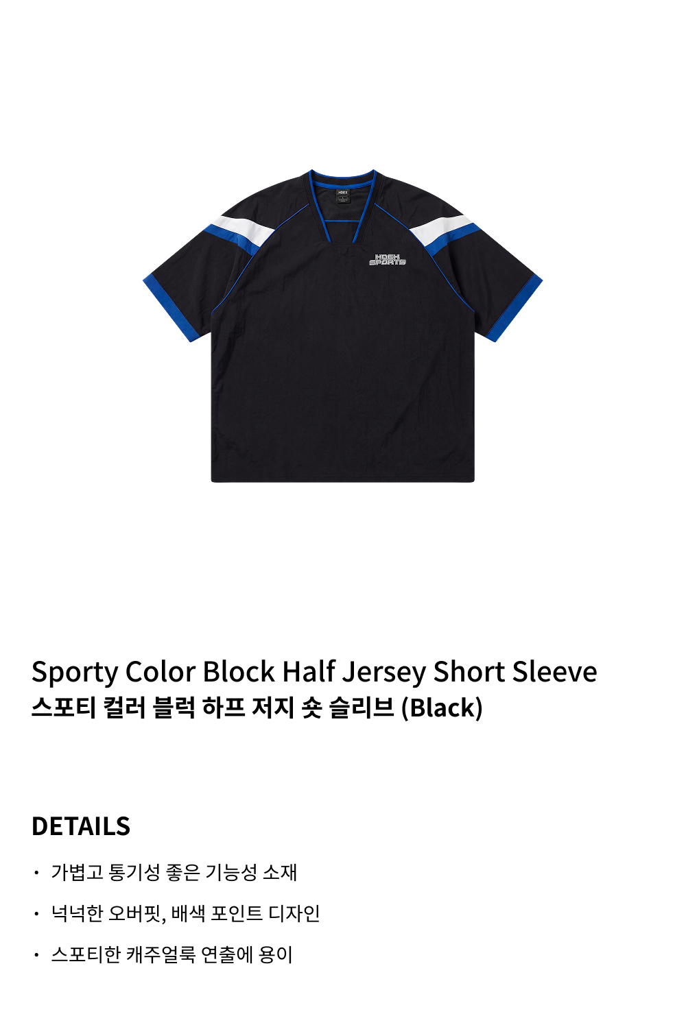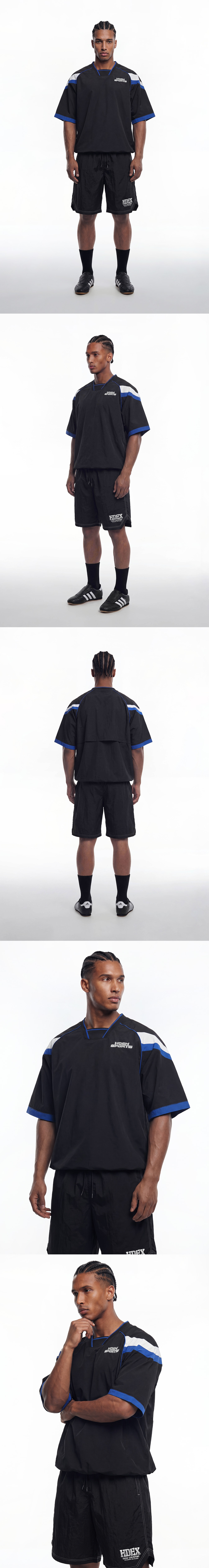 에이치덱스 스포티 컬러 블럭 하프 저지 숏 슬리브 블랙