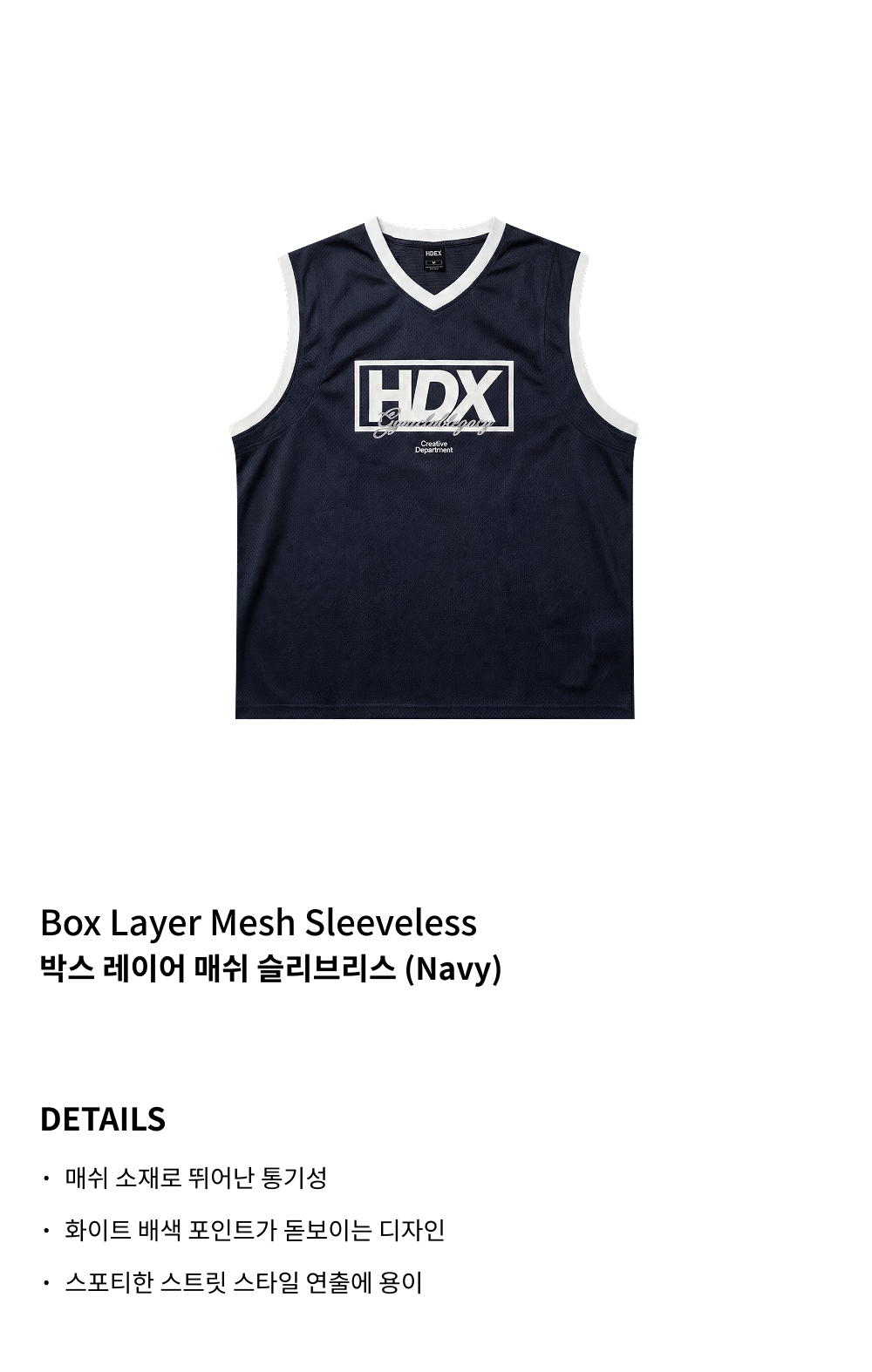 에이치덱스 박스 레이어 매쉬 슬리브리스 네이비