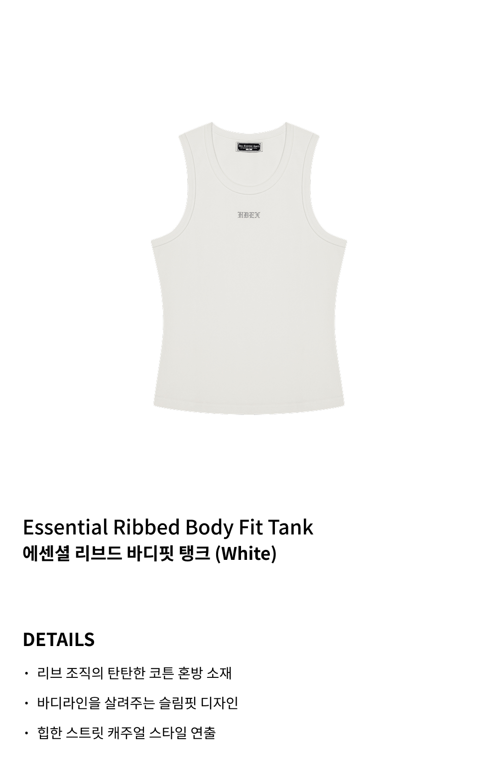 에이치덱스 에센셜 리브드 바디핏 탱크 화이트