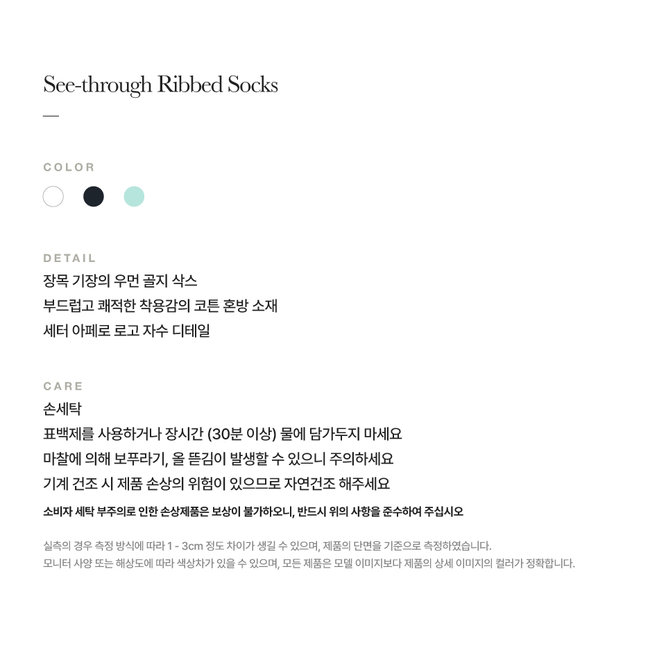 세터 우먼 시스루 골지 삭스 민트