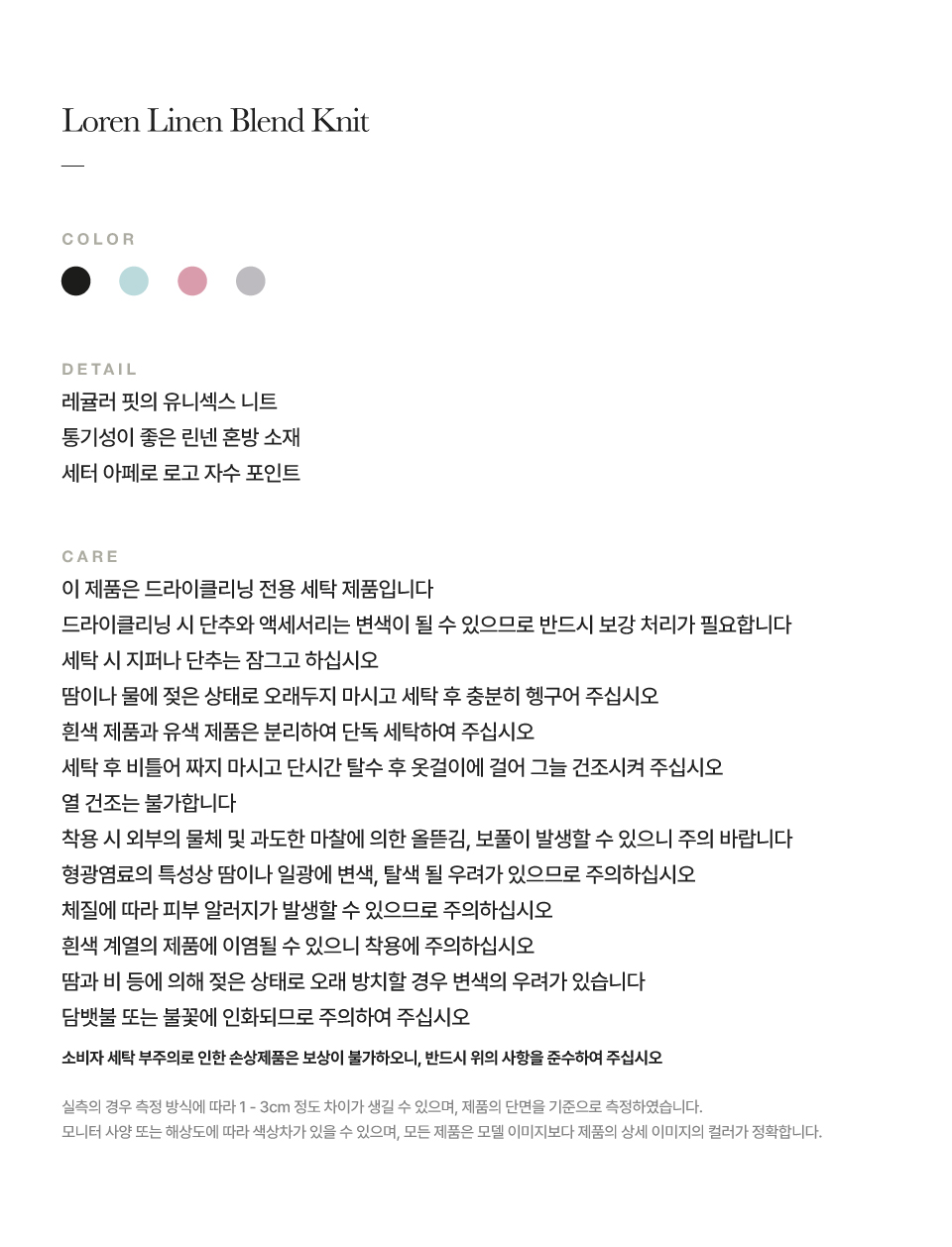 측정 방법에 따라 사이즈에 일부 오차가 있을 수 있습니다.