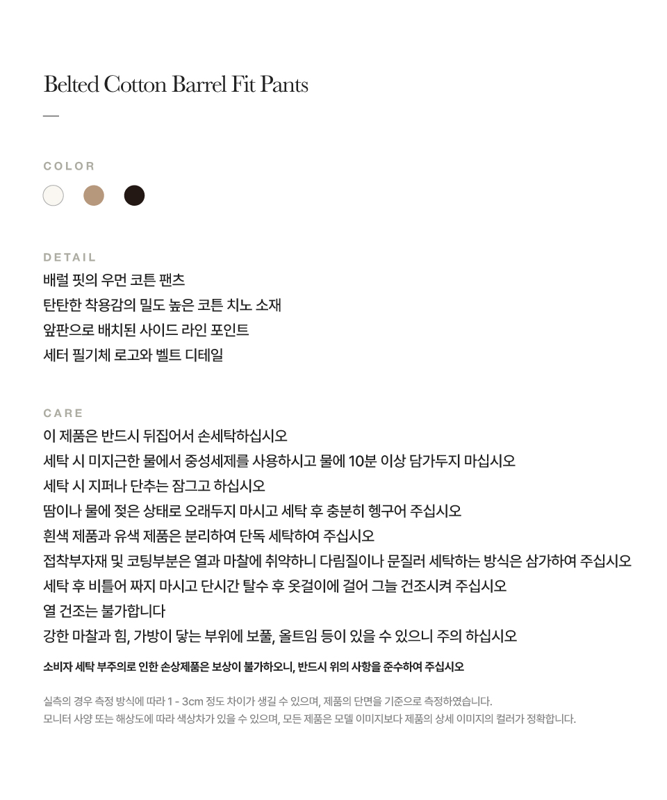 [사은품 증정] 세터 우먼 벨티드 코튼 배럴 핏 팬츠 베이지