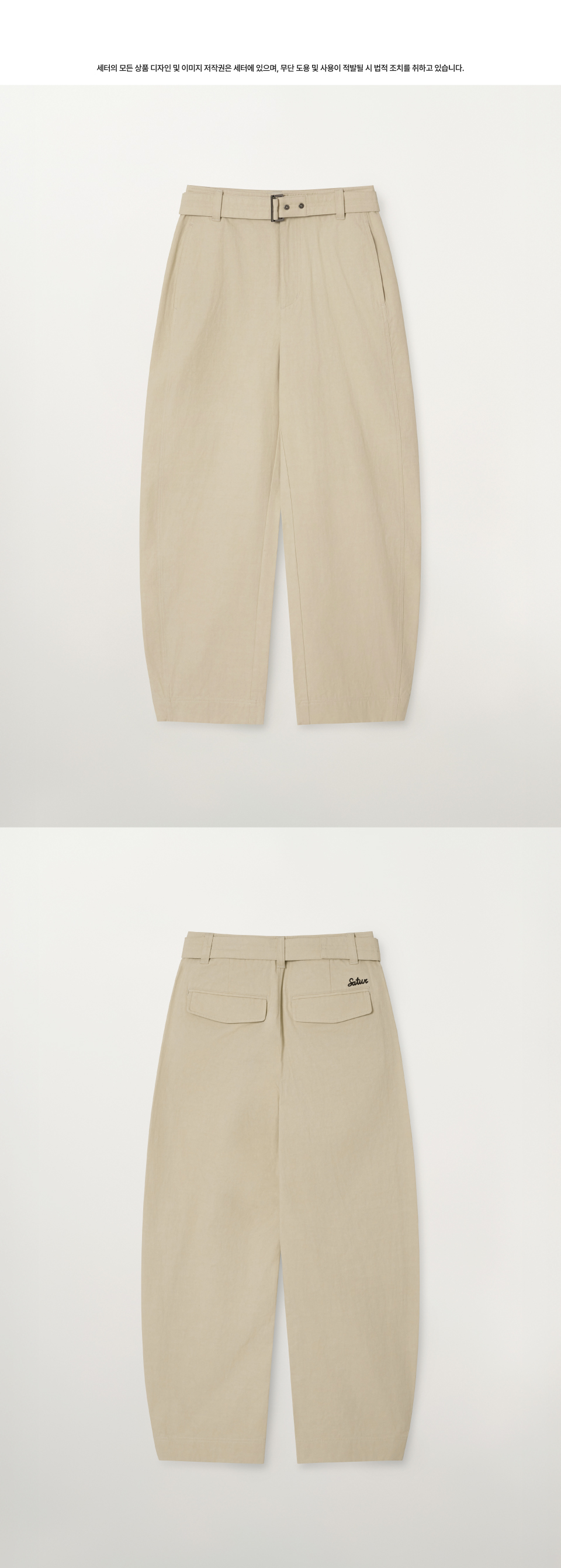[사은품 증정] SATUR W Belted Cotton Barrel Fit Pants Beige