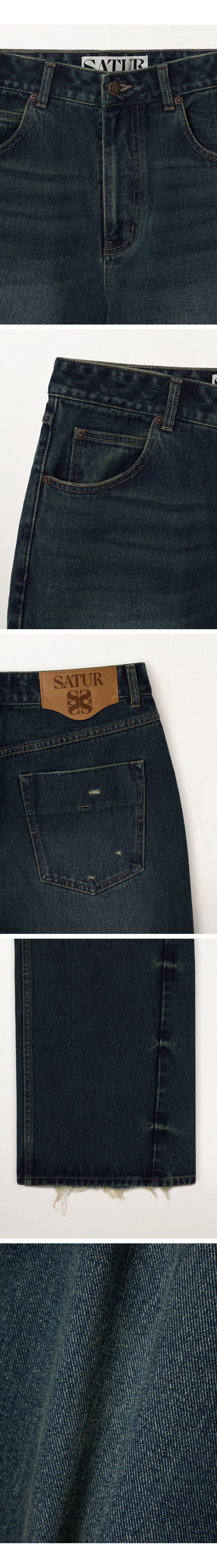 [사은품 증정] SATUR Damage Washed Flare Fit Denim Pants Deep Blue