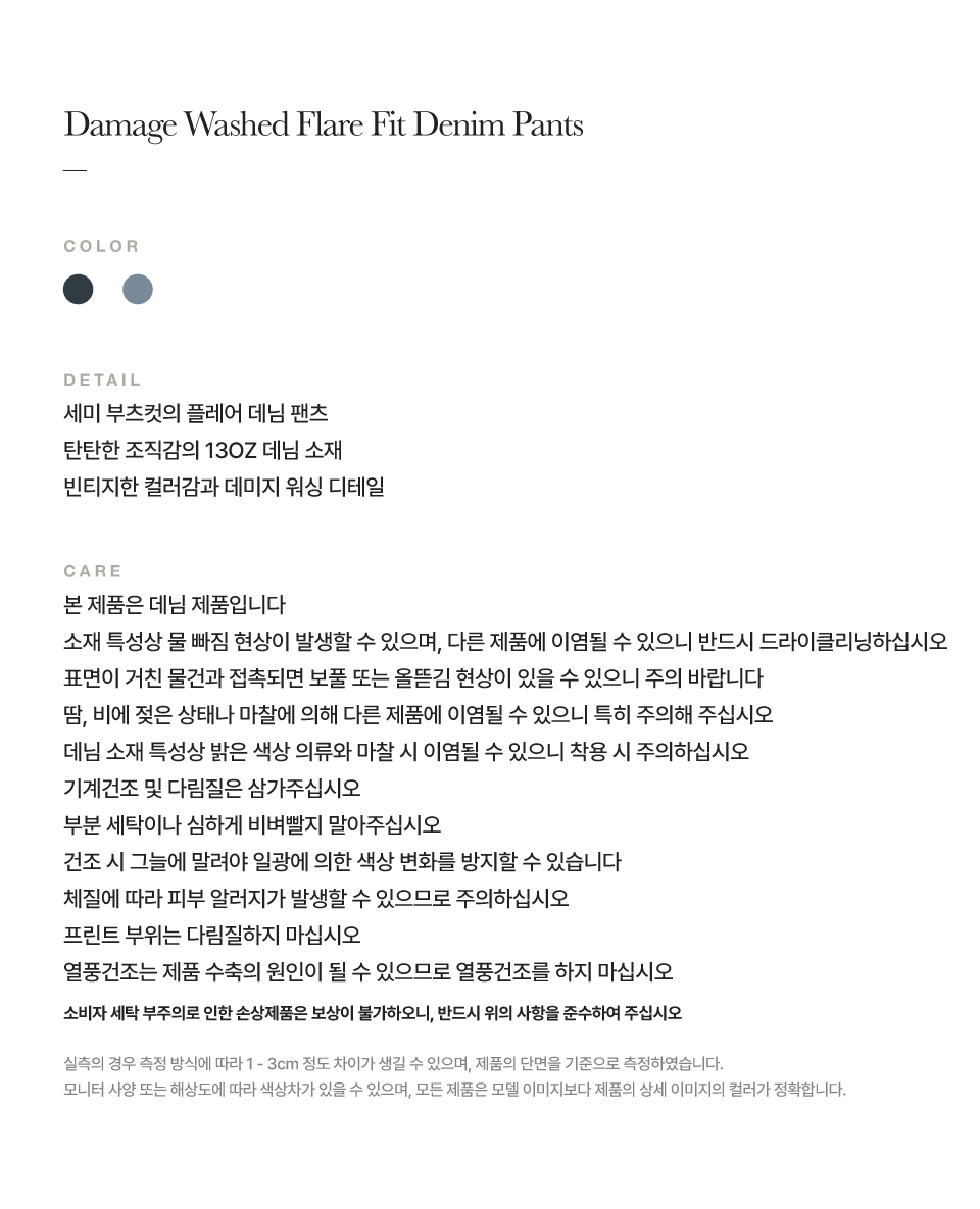 [사은품 증정] 세터 데미지 워시드 플레어 핏 데님 팬츠 딥 블루