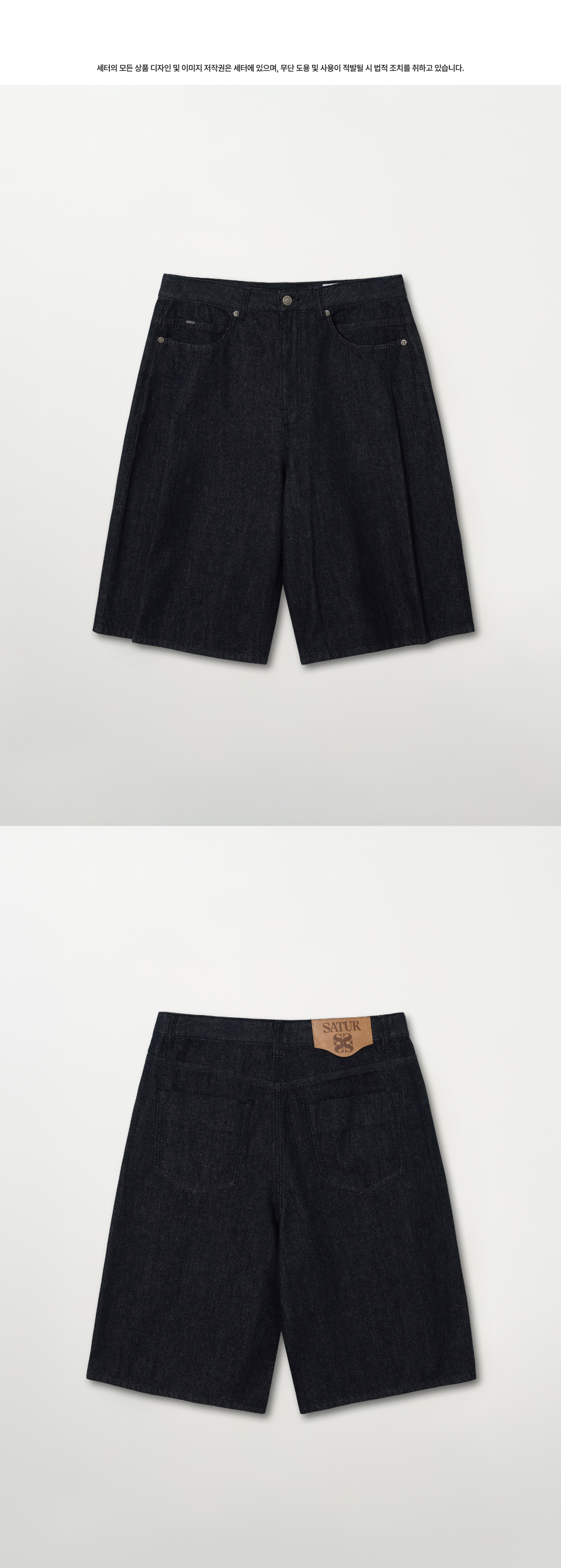 [사은품 증정] SATUR Pleats Bermuda Indigo Denim Shorts Indigo