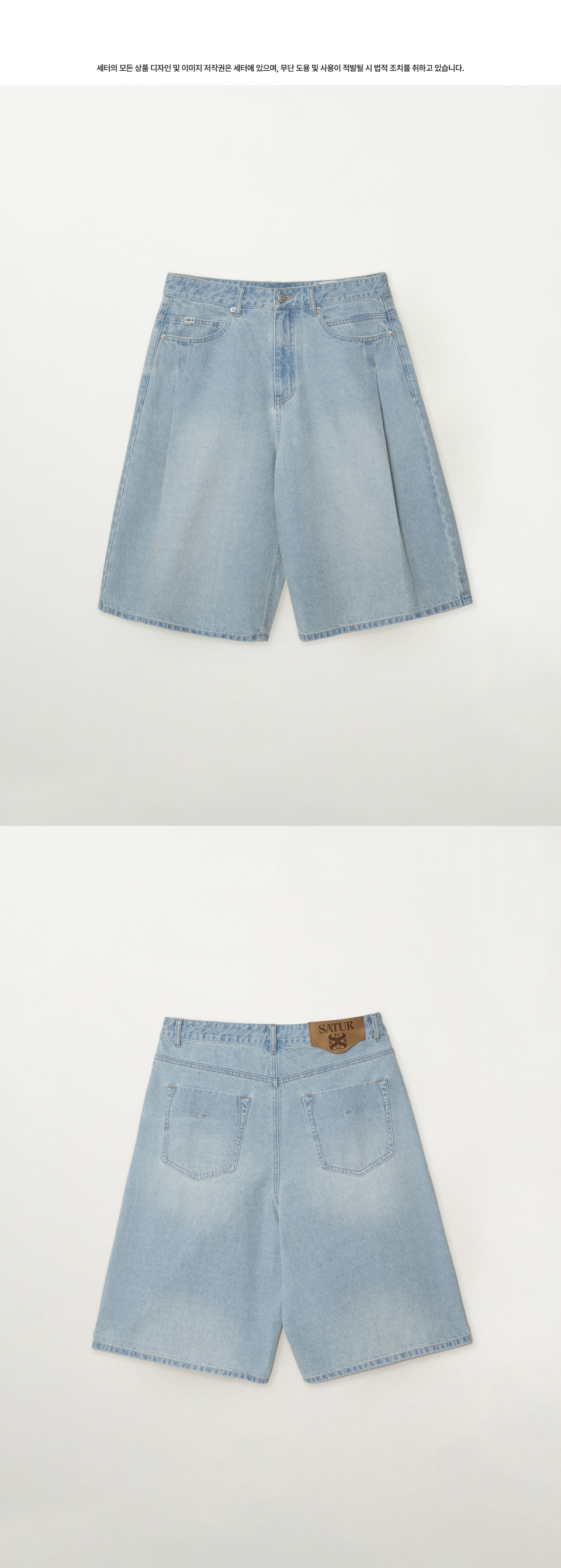 [사은품 증정] SATUR Pleats Bermuda Washed Denim Shorts Light Blue
