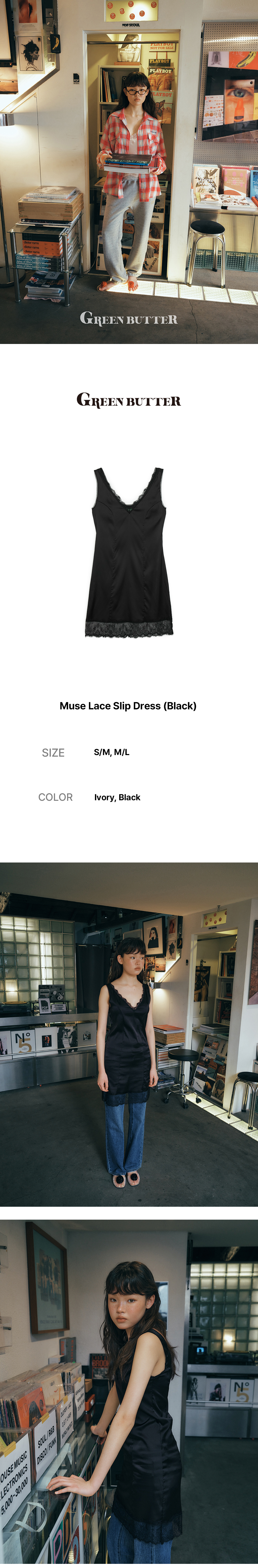 그린버터 뮤즈 레이스 슬립 드레스 블랙